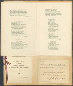 - Clearihue, J. B. (Joseph Badenoch), 1887-1976, Dinners and dining, Lichnowsky, Karl Max, Fürst von, 1860-1928, Clubs, and College students