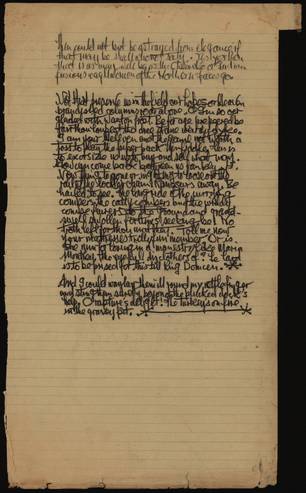 - Handwritten with black and blue ink on pages that have been burnt around the edges. Last page typescript in black ink with handwritten notes.