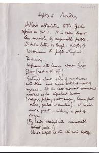 - Sept 26 Monday Hitler's ultimatum to the Czechs expires on October 1. It is taken less & less seriously by responsible people. Dictated letters to Beryl: chiefly of reassurance to people in England. Dictionary . Conference with Laura about Swiss Ghost (rest of...