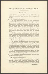 Loose item from an envelope in the Joseph B. Clearihue scrapbook (ScrpBk_2_182). A page from the "Roman Law I." section of a 1913 B.A. examination in jurisprudence, questions 1-3.