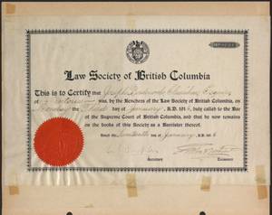 Page includes one textual record from the Law Society of British Columbia, dated January 17, 1916. It states that Joseph B. Clearihue, Esquire, was called to the Bar of the Supreme Court of British Columbia on January 3, 1916, by the Benchers of the Law Society of British Columbia.