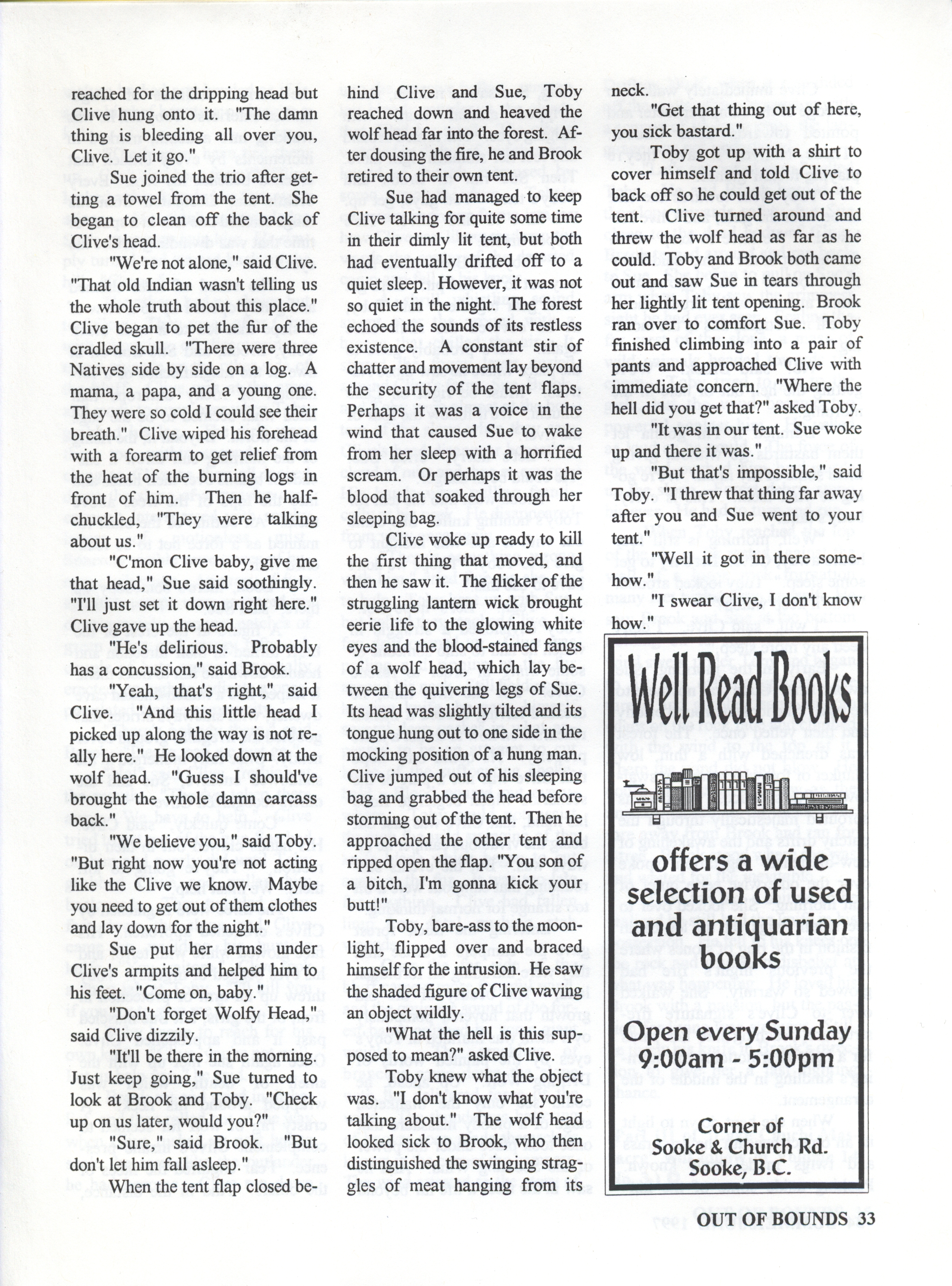 A non-profit quarterly publication of the thoughts, feelings, and distinct perspectives of prisoners and visitors by the prisoners at William Head Institution in Victoria, B.C. with the aim of providing a different view to the general public. Edited by Patrick W. Rafferty.