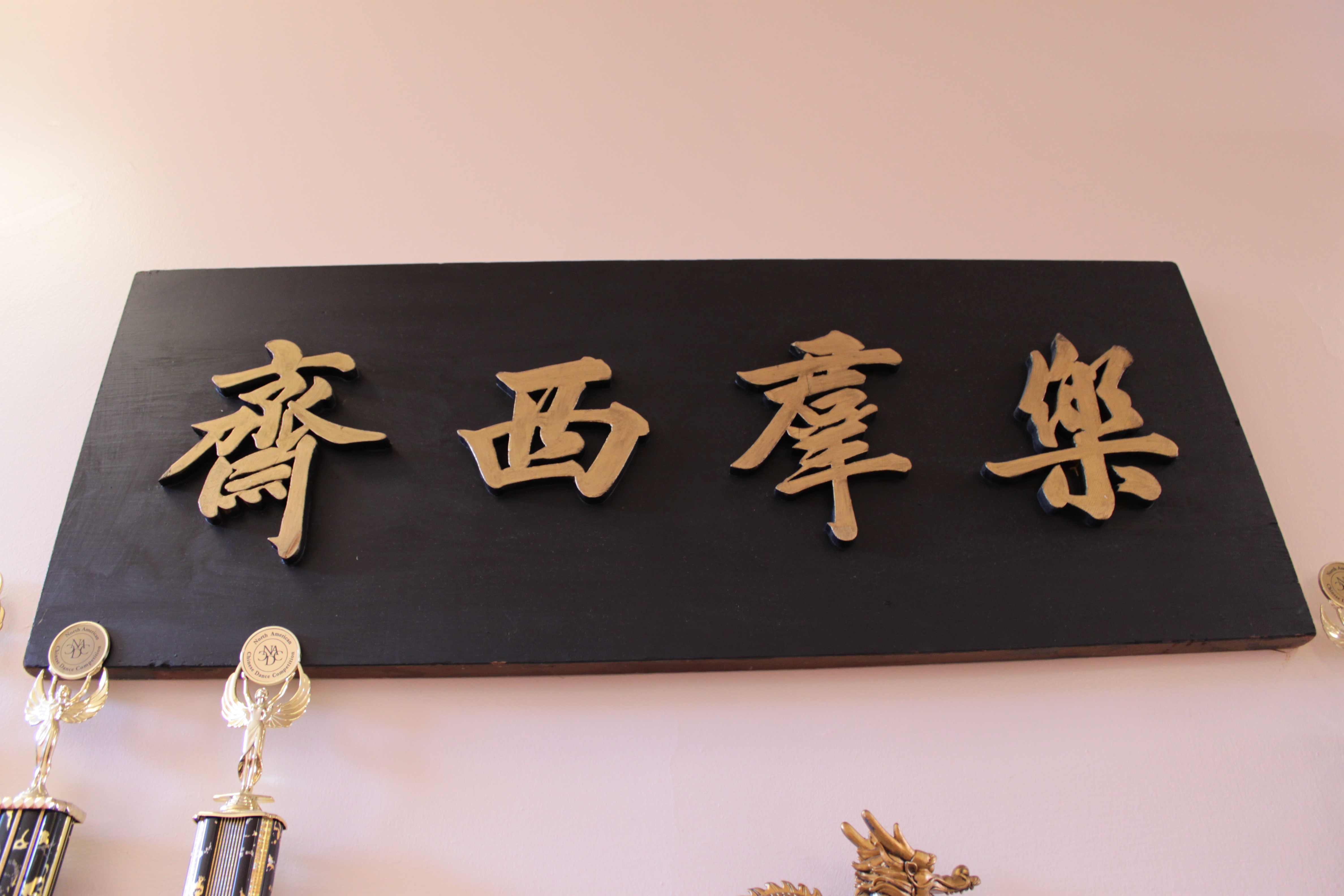 A wooden signboard of the Lequn Yishu - West classroom. Two trophies are lined on the left below the board. Located outside of the office in the Chinese Public School (636 Fisgard Street, Victoria, B.C.) on the second floor at end of hallway to the left. Photo taken for the Chinese Public School picture collection. Taken on May 9, 2012. In 1899 the Chinese community in Victoria, B.C. organized a fund raising campaign to establish a Chinese school. The school was first located on the third floor of the old building of the Chinese Consolidated Benevolent Association (CCBA) on 554-560 Fisgard Street. It was named Lequn Yishu (乐群义塾, Free School Enjoyed by Public). In 1909, CCBA completed a new building at 636 Fisgard Street to expand the original Lequn Yishu in response to racial and cultural segregation imposed by the school board and government. Lequn Yishu was renamed Daqing Qiaomin Gongli Xuetang (大清侨民公立学堂, Greater Qing Imperial Overseas Residence Public School) and it was changed into Huaqiao Gongli Xuexiao (华侨公立学校, Chinese Public School) since 1912.