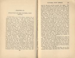 Describes Victoria, British Columbia as it was in the last half of the 19th century. Signed by Dingley Dell who wrote the included biography of Fawcett. Includes information about the author growing up in Victoria, Victoria's first Directory, history of the streets, churches, and fire department among many other topics. The plates include images of different streets, buildings, people, and scenes.
