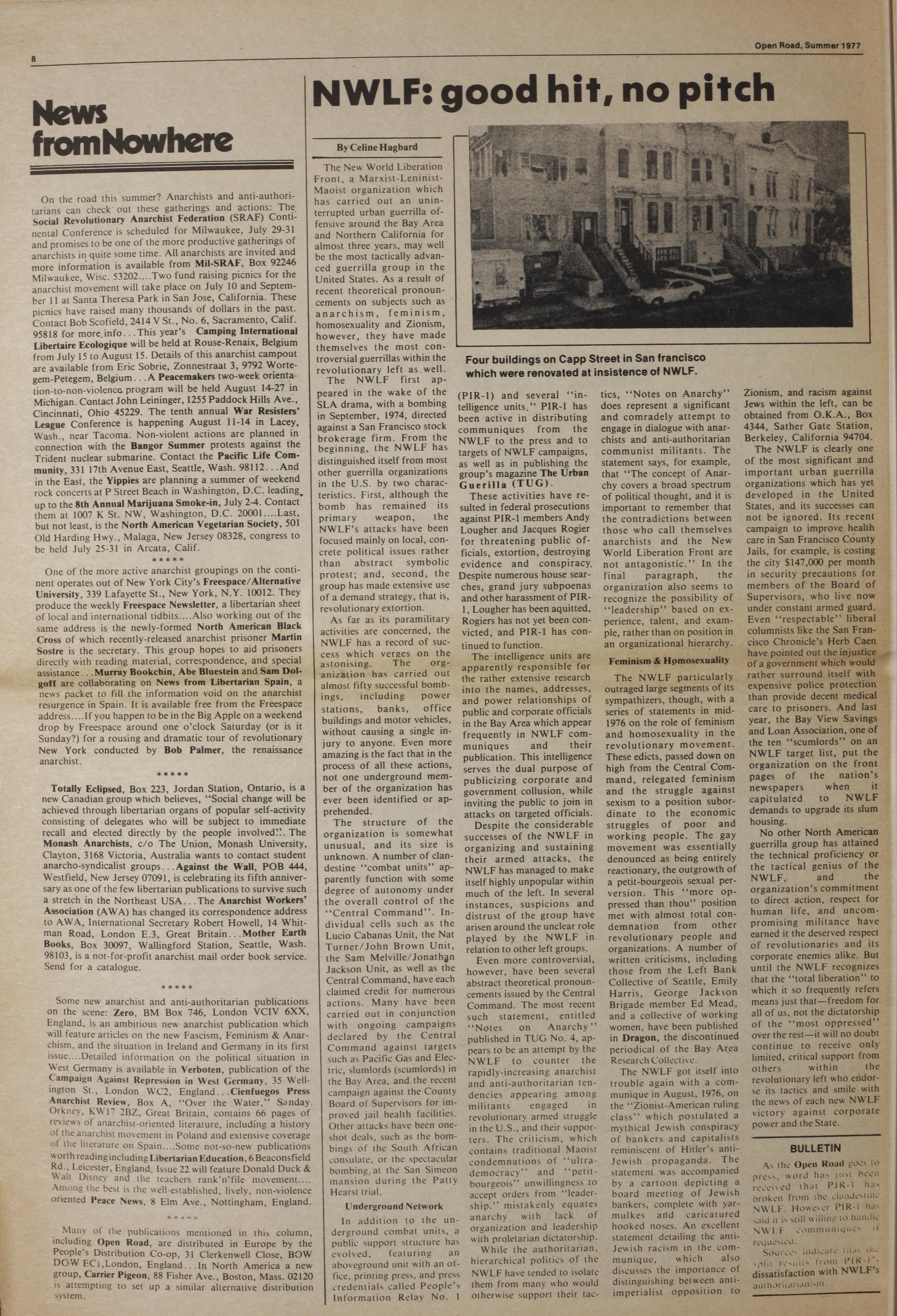 In this issue: Have the buggers got your number?, Blowing away the media's blackout: Seattle bombing backs Walla Walla prisoners; Dying for a living: smelter workers take the cure; Roadside notes; On the road; Summer of resistance: maybe a sustained and living presence can stop a nuclear monster; Bugs, taps and beepers; Piepeople find Cleaver; GJB (George Jackson Brigade) blasts media blackout; Spanish anarchist assassinated: Canada welcomes murderer; Fighting green death; Spain: resurgent anarchists confront regime; Roca workers battle bosses, unions; NWLF (New World Liberation Front): good hit, no pitch; News from nowhere; Peltier nailed for two life terms: racist judge silences defense; Emma Goldman poster; Peeling away the taboo; Moving for grassroots social change; Battered women: breaking the ties that bind; Castro strengthening hold on Cuba; Patagonia vividly recreates insurrection; Out of the jungles, into the streets: Abraham Guillen's guerrilla strategy; Abbie and Jerry: you can't go home again (book reviews); The politics of no-politics (book review); Blowin' down this old technicolor road (movie review); The day of the anarchists