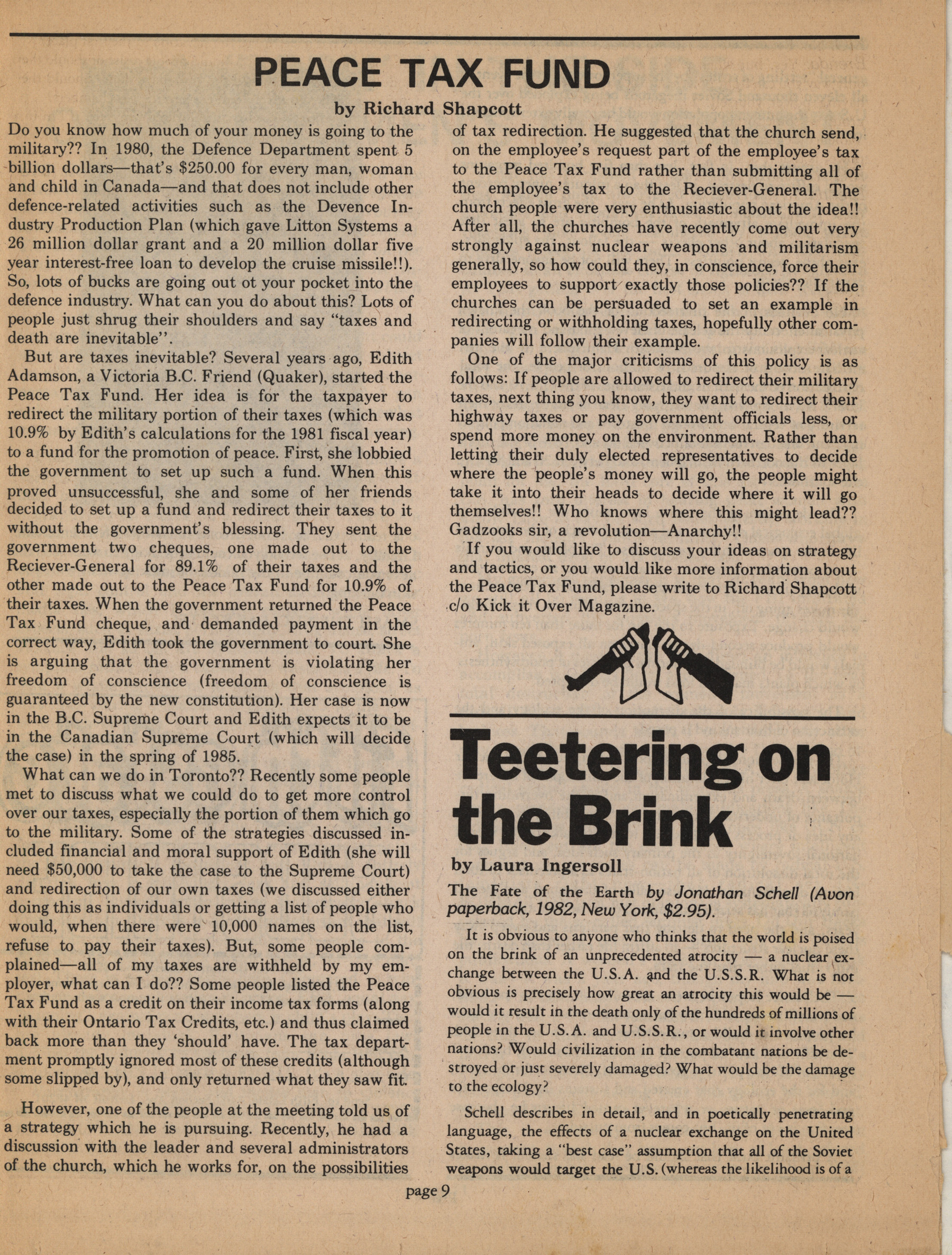 A social anarchist and anti-authoritarian quarterly publication. In this issue: "Sex and peace issue' - Porn debate, Abortion clinic plans, Litton's aftermath: filling in the holes, PiL concert, Leonard Peltier interview.