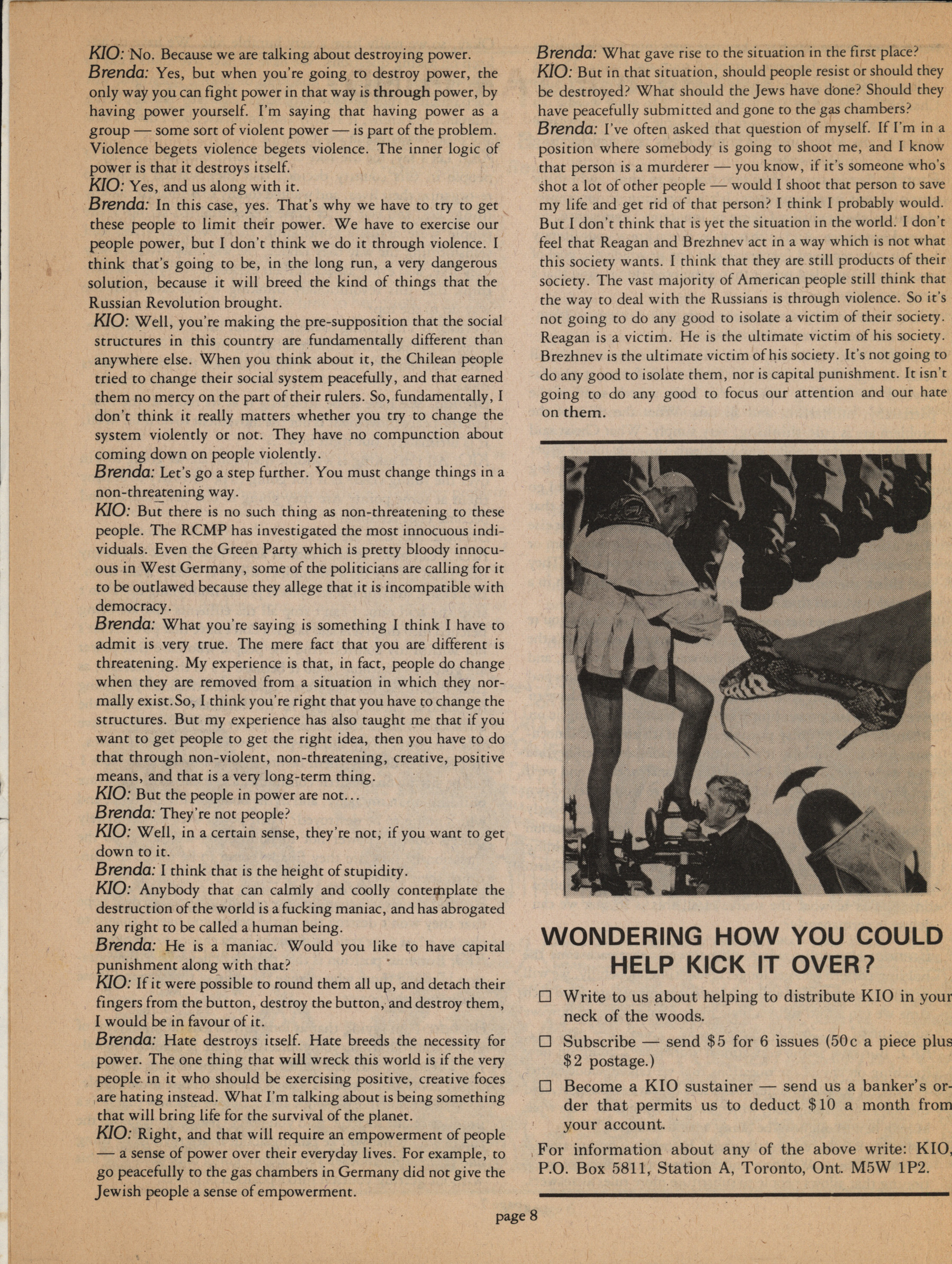 A social anarchist and anti-authoritarian quarterly publication. In this issue: "Sex and peace issue' - Porn debate, Abortion clinic plans, Litton's aftermath: filling in the holes, PiL concert, Leonard Peltier interview.