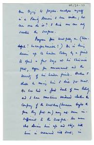Part of a collection of letters to Herbert Read from Joe Randolph "J. R." Ackerley (writer and literary editor of the BBC's weekly magazine The Listener). Read has lost his zest for life and Ackerley hopes he may regain it. Ackerley questions if a person is born with a zest for life or if it can be acquired.