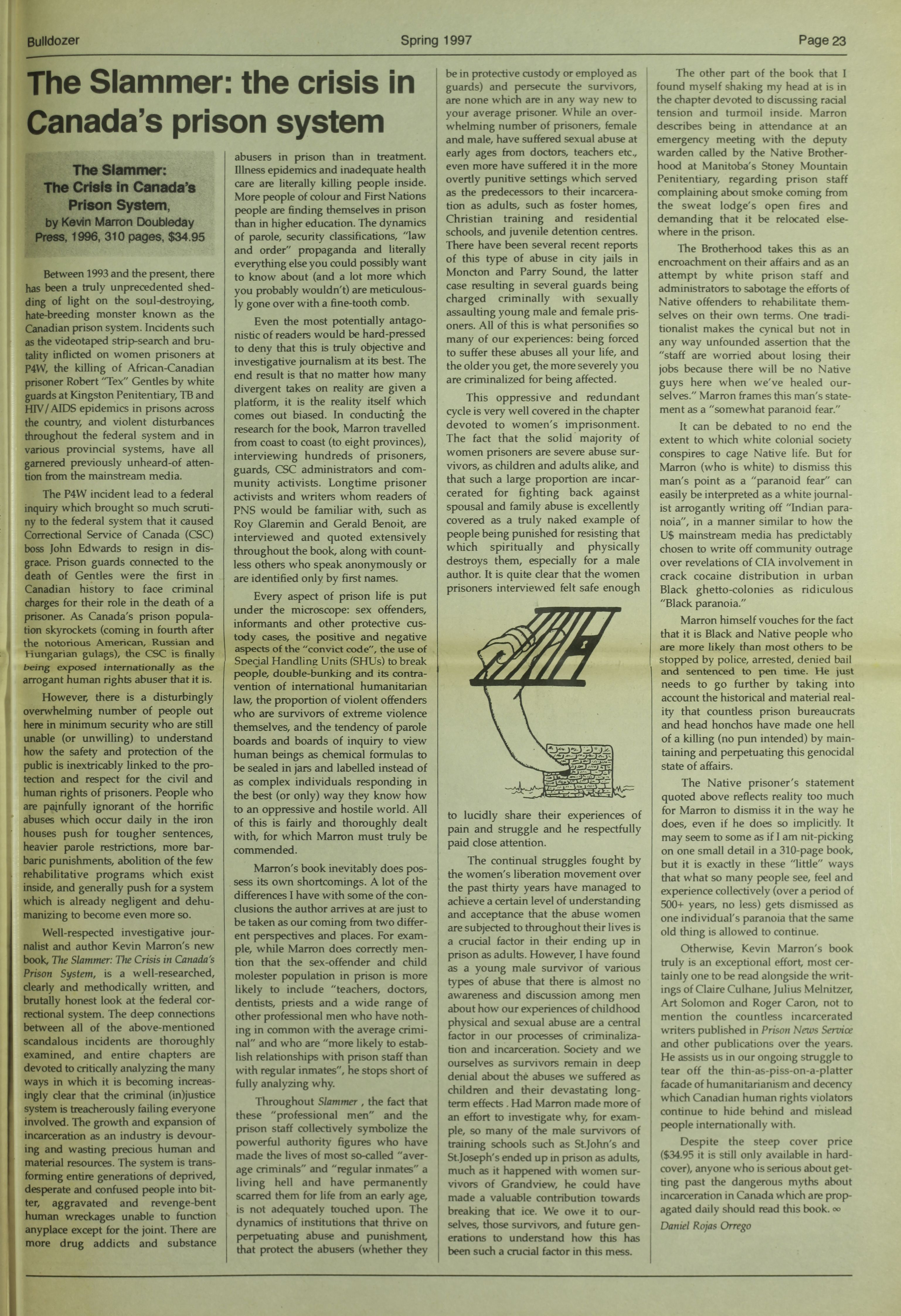 An anarchist publication from Toronto made to support prisoners in various penal institutions. It began in 1980 and featured articles, letters, art, poetry etc. by prisoners and ex-prisoners. By Spring 1997 it had incorporated another journal called the Prison News Service and began to focus more on justice-related issues in Canada, namely: prisons, local jails, refugee detention centres, and First Nations self-determination. In this issue: "Real terrorists at Gustafsen Lake exposed"; "Introduction to the first issue"; "Bruce Clark under legal attack in B.C."; "Free Wolverine"; "Canadian women's prison system still around for 21st century"; "Millhaven riots"; "Statement by women prisoners at P4W"; "Bill 105 - out of the frying pan, into the fire"; "Remember Edmund Wai Hong Yu!"; "The wolf at the door: rent-a-cops could get search and seizure powers"; "Improper interrogation administered by cops"; "Safer cutting"; "Charges dismissed by Crown during the Stoney Point Trials"; "Voices are heard against systemic racism"; "Privatization: hellbound train"; "The contradictions of Commissions"; "The "Danger to the Public" law: a dangerous injustice"; "Together we shall overcome!"; "Nigerian refugee detained in Canada: appeal for help"; "Refugees in detention"; "Another face of neo-liberalism: drug trafficking and commercial banks"; "All too familiar: sexual exploitation in U.S. women's prisons"; "Seaton House no refuge for the homeless"; "Call for action on the youth corrections system"; "Peltier update"; "Staying active on the outside: an interview with Dacajewiah"; "Starvation and torture in Joyceville"; "Norma Jean Croy is free!!"; "Project Another Chance"; "Another Waco? Or First nations revolution? The situation at Big Mountain"; "Collins Bay - not all mediums are created"; "MRTA action to free political prisoners in Peru"; "Interview with Ramona Africa on International Women's Day"; "Update on Mumia Abu-Jamal - situation urgent!!"; "Racism vs. kkkolonialism"; [Book review of] The slammer: the crisis in Canada's prison system by Kevin Marron; Resources.