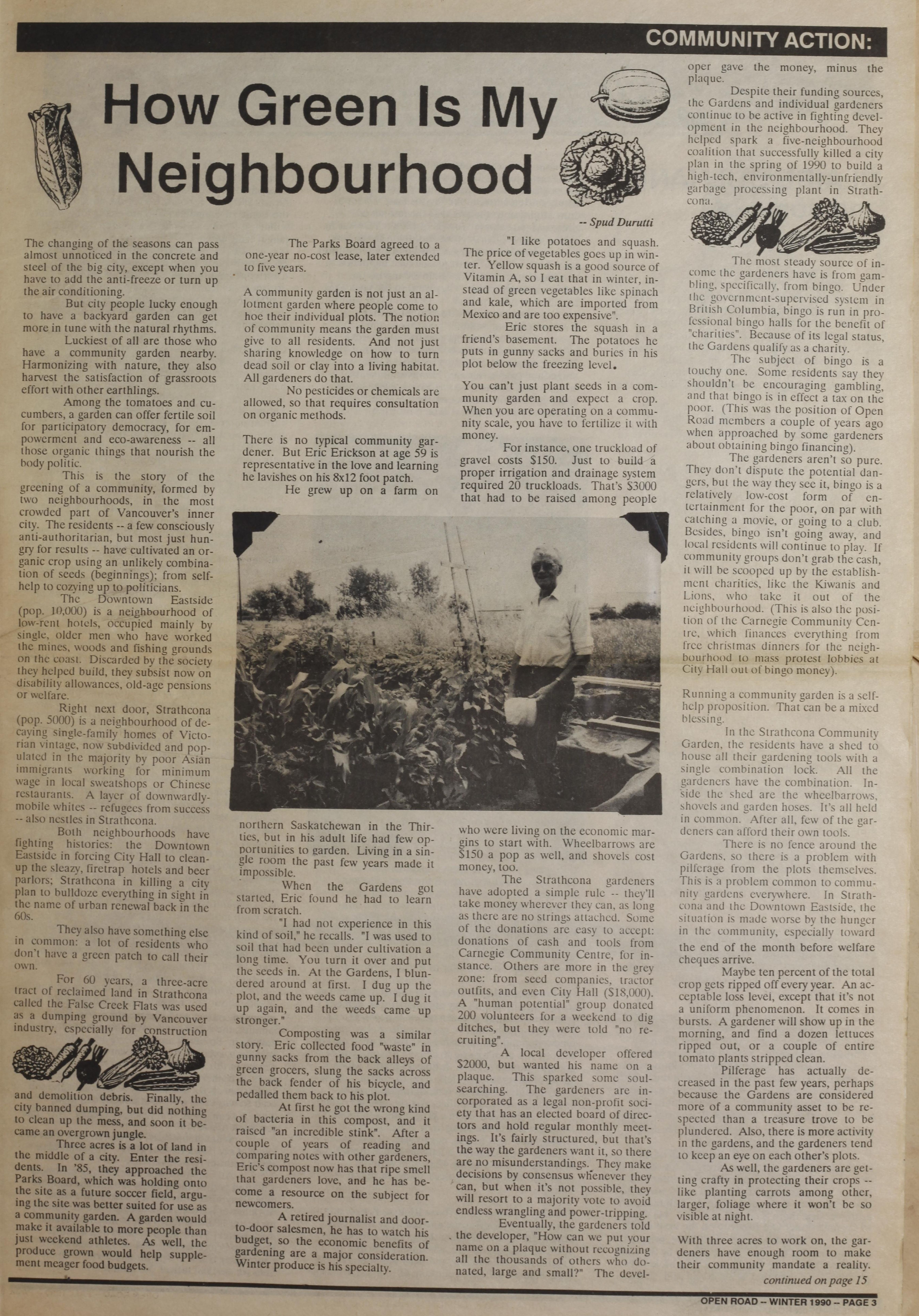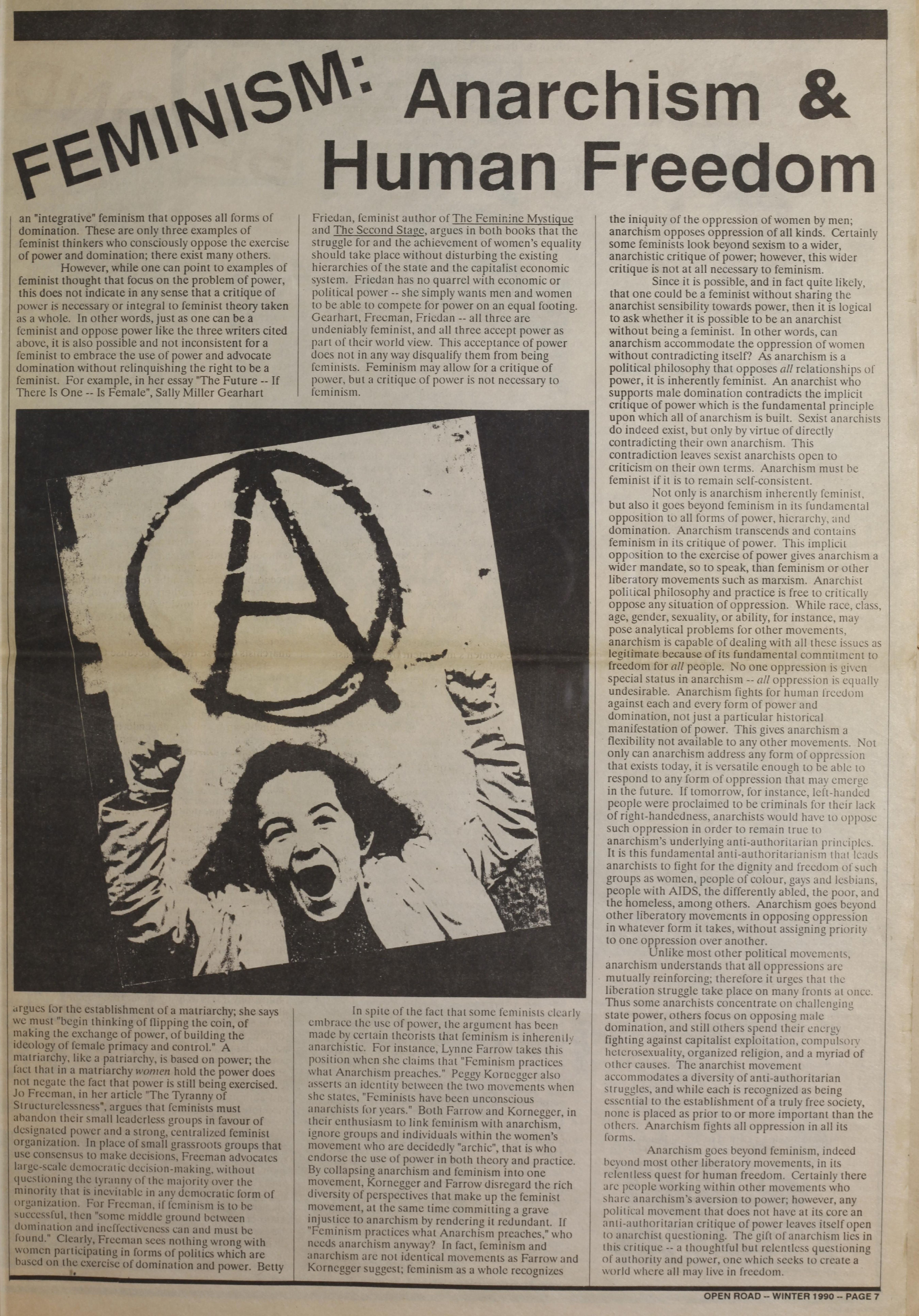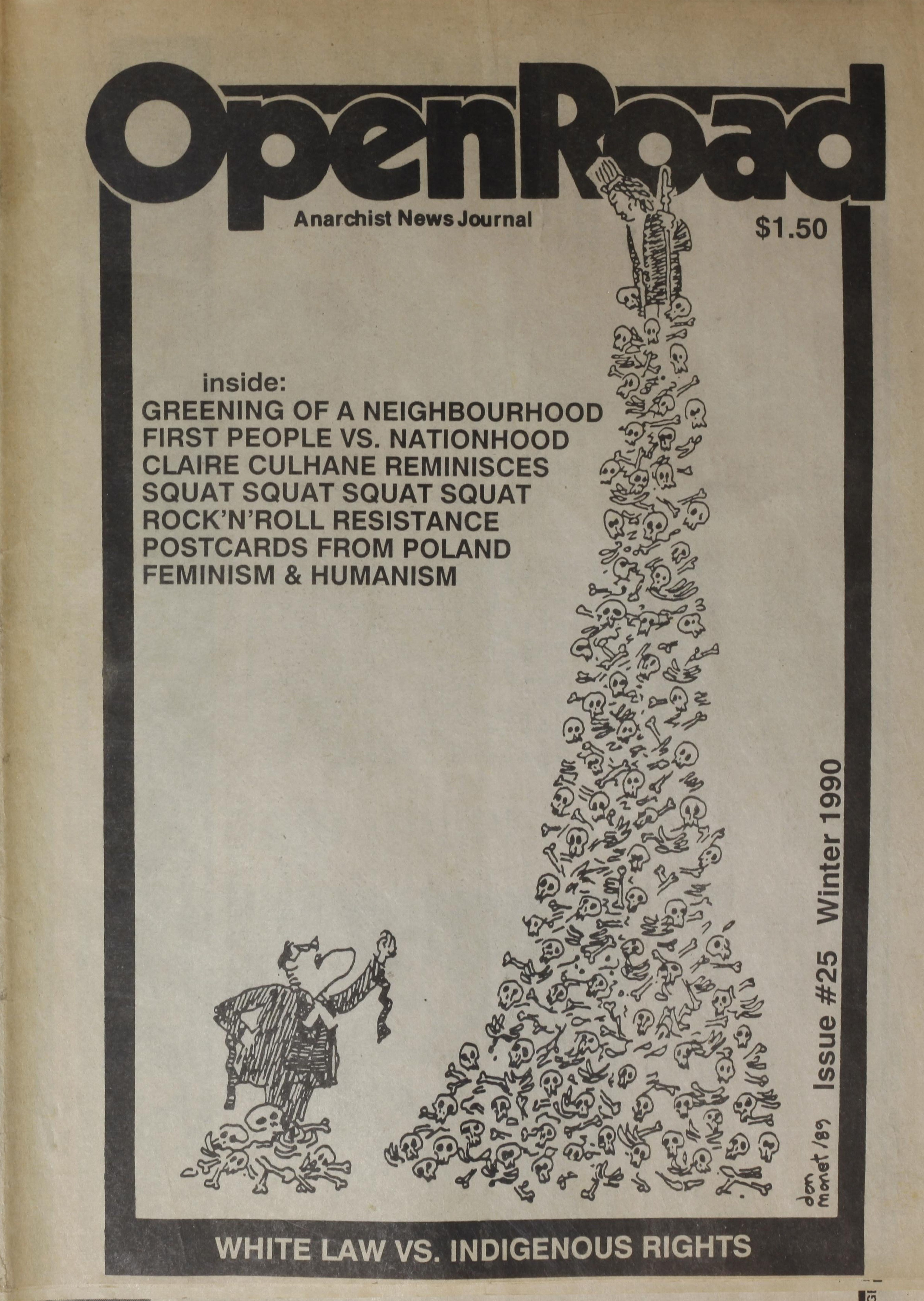 An anarchist publication produced in Vancouver, British Columbia focused on the international spectrum of anarchist and anti-authoritarian activities around popular struggles and social problems. This is the last issue, "after fourteen years the Open road will cease to exist for the (un)forseeable future. The collective has gone through many changes and has involved scores of people. At various times, from a high of a dozen to a low of two, and now we are three. The collective has consisted of a disparate group of people, covering all facets of the anarcho-movement. This has helped in keeping the correct line out of the paper and actually making it what someone once called the 'Rolling Stone of Anarchism".