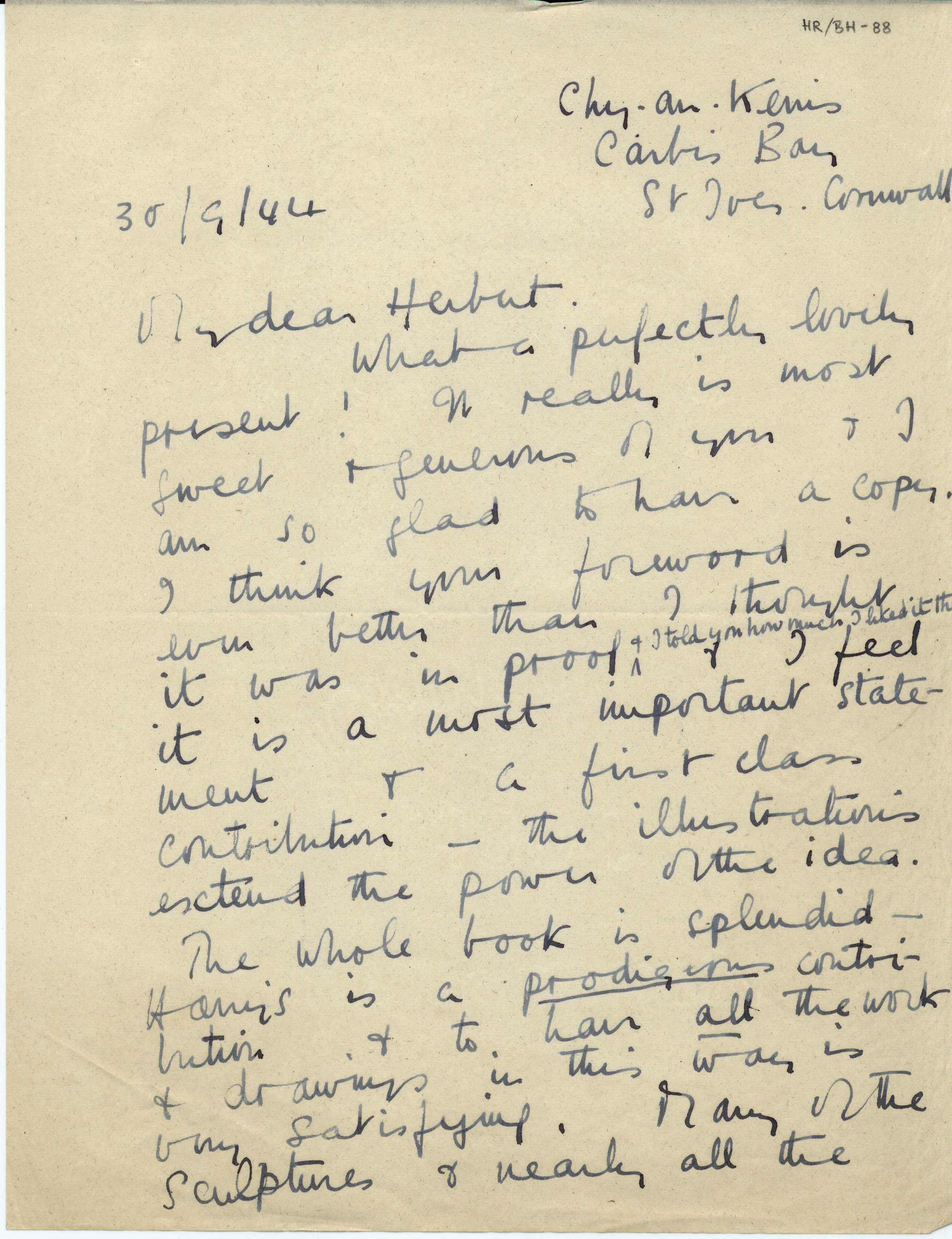 Letter from Barbara Hepworth to Herbert Read, September 30, 1944
