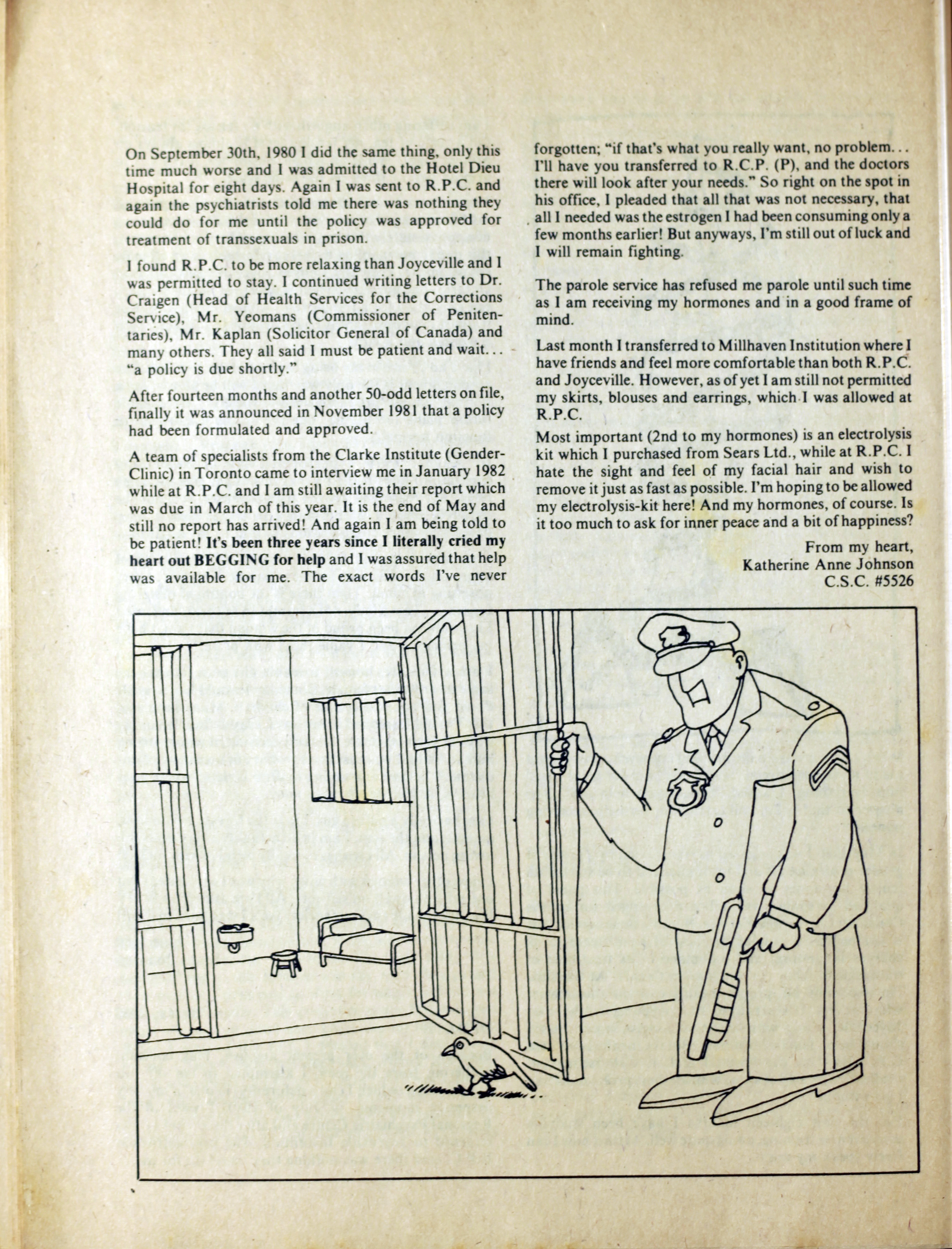 An anarchist publication from Toronto made to support prisoners in various penal institutions. It began in 1980 and featured articles, letters, art, poetry etc. by prisoners and ex-prisoners. By Spring 1997 it had incorporated another journal called the Prison News Service and began to focus more on justice-related issues in Canada, namely: prisons, local jails, refugee detention centres, and First Nations self-determination. In this issue: "Introduction"; "Ode to an ex-con's wife" [poem] by Pep Murray; "Money"; "Bruising the cruise"; "Apologies but few regrets"; "April is the cruellest time"; "Just-us in the heart of America - the trial of Mumia-Abu Jamal"; "Jamal's statement"; "Archimbault agony"; "Tempered by torment"; "Is there life after prison?"; "Domestic violence"; "The heart is strong"; "The great white hope"; "They got movin' on"; "Walla Walla intolerable"; ""Na-kaa-ch-wee-toa unaweep""; "Spirit in the iron houses"; "Who is Brownbear?"; "Gary Butler speaks"; "Thunder in the Papa Sapa"; "Reflections on my past"