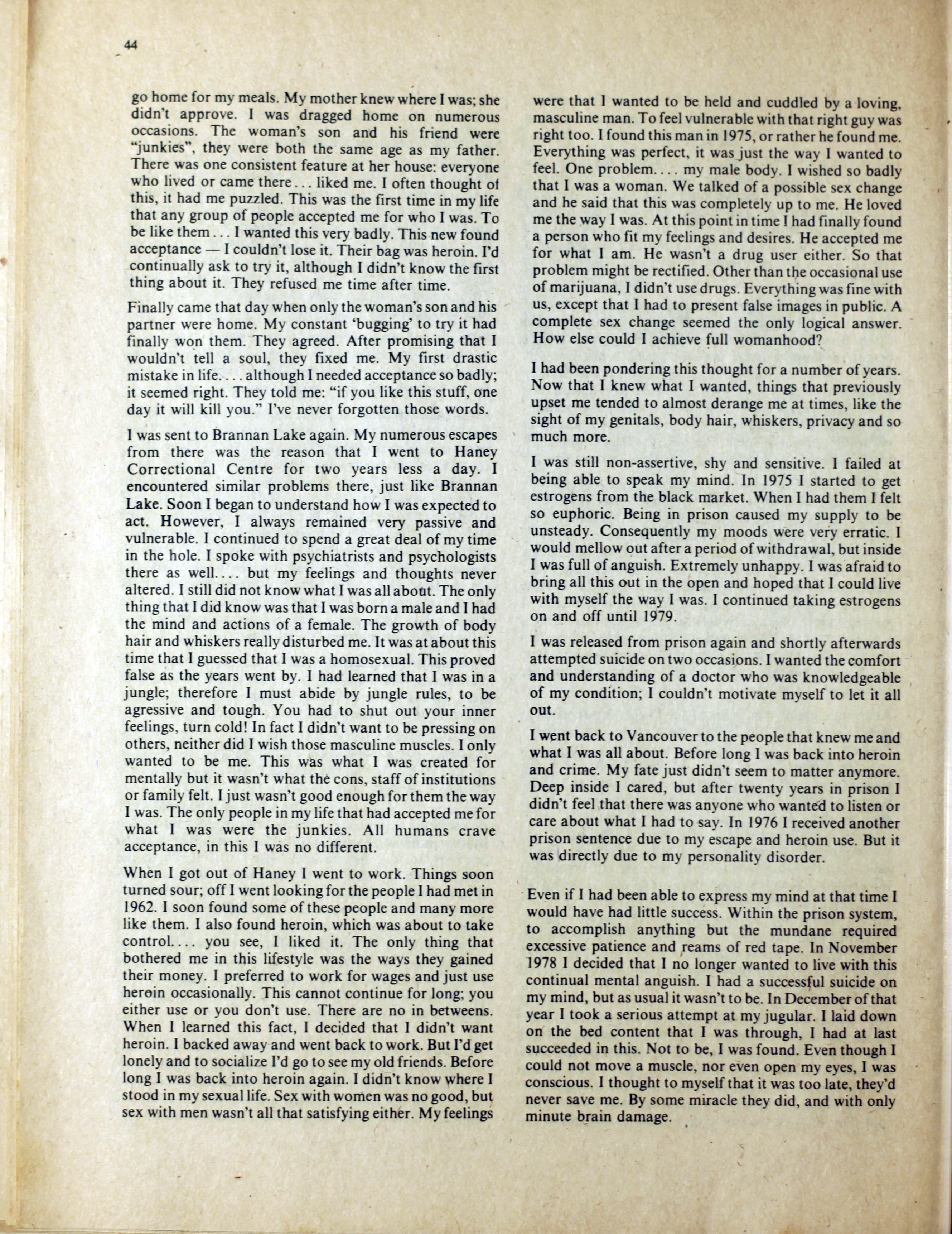 An anarchist publication from Toronto made to support prisoners in various penal institutions. It began in 1980 and featured articles, letters, art, poetry etc. by prisoners and ex-prisoners. By Spring 1997 it had incorporated another journal called the Prison News Service and began to focus more on justice-related issues in Canada, namely: prisons, local jails, refugee detention centres, and First Nations self-determination. In this issue: "Introduction"; "Ode to an ex-con's wife" [poem] by Pep Murray; "Money"; "Bruising the cruise"; "Apologies but few regrets"; "April is the cruellest time"; "Just-us in the heart of America - the trial of Mumia-Abu Jamal"; "Jamal's statement"; "Archimbault agony"; "Tempered by torment"; "Is there life after prison?"; "Domestic violence"; "The heart is strong"; "The great white hope"; "They got movin' on"; "Walla Walla intolerable"; ""Na-kaa-ch-wee-toa unaweep""; "Spirit in the iron houses"; "Who is Brownbear?"; "Gary Butler speaks"; "Thunder in the Papa Sapa"; "Reflections on my past"