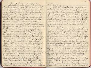 The first of eight diaries written by Archie Wills during World War I. The diary covers the period of his training at Fort Macaulay and relocation to the Fort Work Barracks, both in Esquimalt, British Columbia. Wills writes of his decision to join the 5th Regiment, C.G.A, his anticipation of overseas service, camp life, and conditions during a blizzard at Fort Macaulay, the transition from office work to hard labour, guard duty, food rations, leisure and sports activities, and interactions with fellow soldiers and officers. The diary includes descriptions of military training and exercises, including instruction in artillery, signaling and trigonometry, shooting practice and rifle and bayonet drills, and horseback riding lessons. Wills’ diary illustrates the attitudes and activities of his fellow soldiers and records humorous dialogue, nicknames given to Fort Macaulay by the soldiers, comments on military hierarchy, and an account of a discussion about Canadian identity. At the Work Point Barracks, Wills writes about swearing in for overseas service (April 14, 1916), working in the orderly office, and his promotion to “Bombardier” (May 13, 1916). People mentioned include: Bill (William) White, Lieutenant Clearihue, Lieutenant Prior, Sergeant Major McDougall, Bill (William) Creach, Bill (William) Newton and George Lomas.