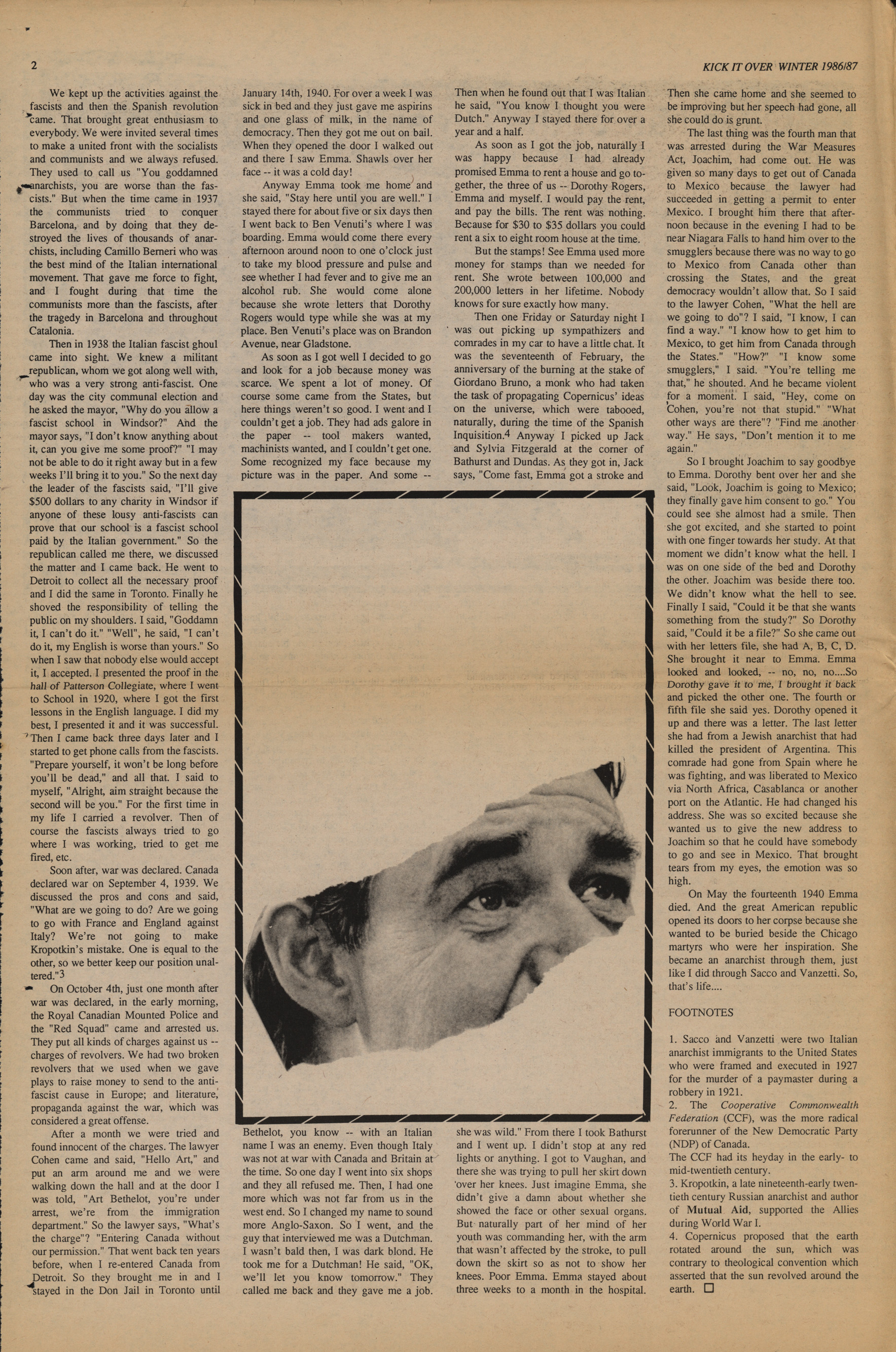 A social anarchist and anti-authoritarian quarterly publication. In this issue: Art and community, Red and green: Gorz and Bahro, Kirkpatrick Sale interview, Anarchy in Toronto: an oral history, Anarchy down on the farm, Eco-feminism.