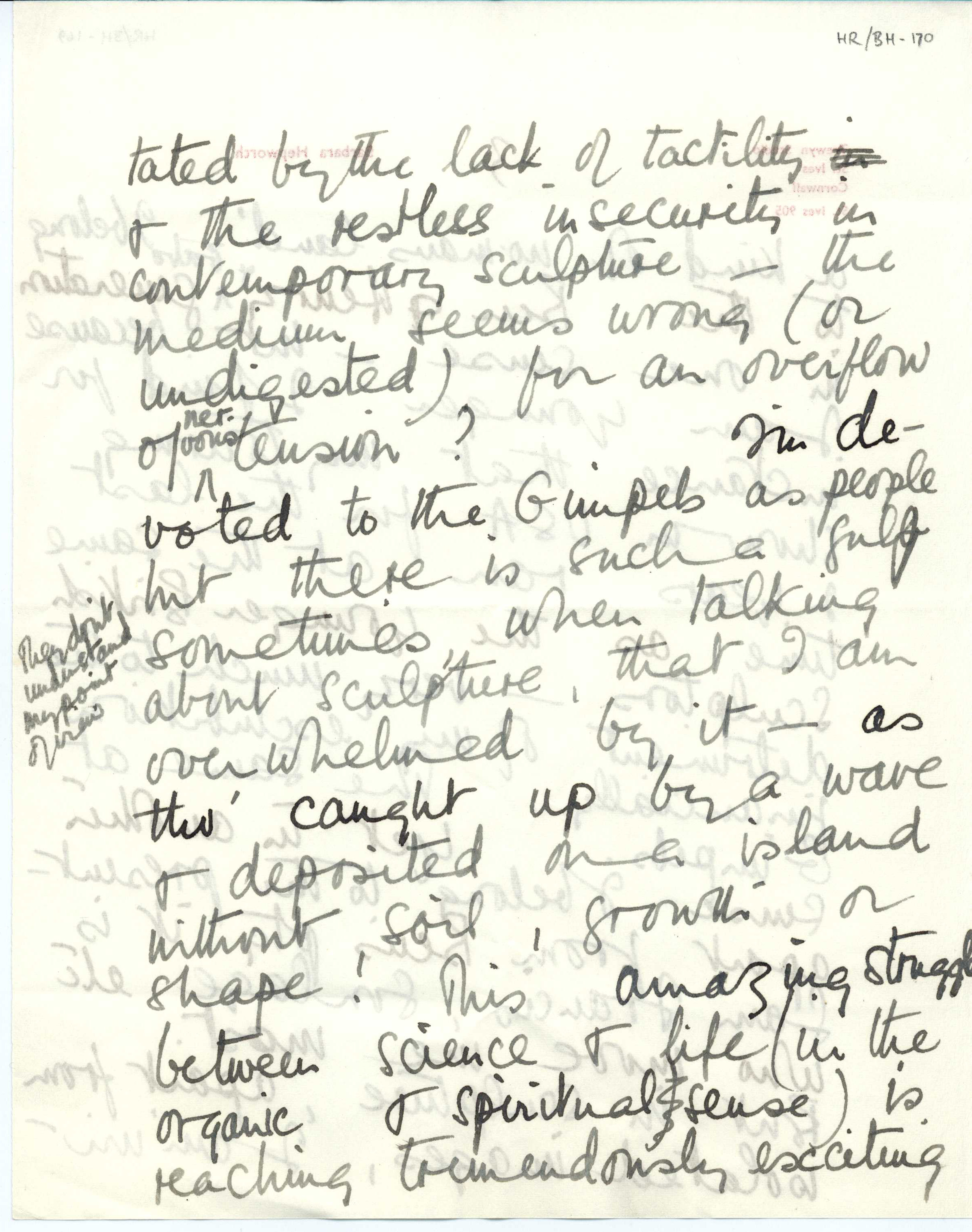 Part of a collection of letters to Sir Herbert Read from Dame Barbara Hepworth (English artist and sculptor and, along with Read, a member of the modern art movement Unit One founded by Paul Nash), that span the time period of 1940 to 1965 and discuss their artistic and literary endeavors, philosophical and political views, and personal lives. Hepworth discusses older and younger generations of sculptors.