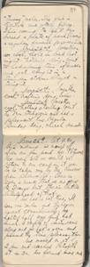 The fourth of eight diaries written by Archie Wills during World War I. Describes Wills’ experience at Witley Camp as well as his training at Woolwich, both located in England between February and August 1917. Wills describes the daily life of the soldiers at the Witley training camp, which consisted of parades and field exercises. The men are trained in the use of gas helmets. The diary illustrates the hardships endured by the soldiers, such as the wet and cold weather, lack of baths due to broken pipes and freezing temperatures and insufficient rations. During their spare time the men explore the surrounding areas and socialize with the locals. By March 13th Wills and two of his friends begin the publication of their paper “O-Pip”, releasing the first volume in April 1917. By the end of June Wills begins a 6-week training course in Woolwich. He returns to Witley camp on August 13th 1917. People mentioned include: People: Goldie, James Alexander; Newton, William; Gisborne, Frederick; Arthur, Prince, Duke of Connaught, 1850-1942; Borden, Robert L., Sir, 1854-1937; Hughes, Garnet Burk; Wells; Cohen; McMillan, Evan; Yates, Bob; Waterson; “Pink”; Shaw, Forrest Other military personnel mentioned: Alex Goldie, Prior Hayman, Farley, Fred Gisborne - “Gipny”, Percy Matlin, Jim Frane (cook), Sir Robert Borden, Brigadier General Hughes Locals mentioned: Mrs. Kent, Mr. and Mrs. Sturgeon and their son Rex, Ms. Laura Peto; Smith girls; Mrs. Henderson in Hasleton; Lady Combe