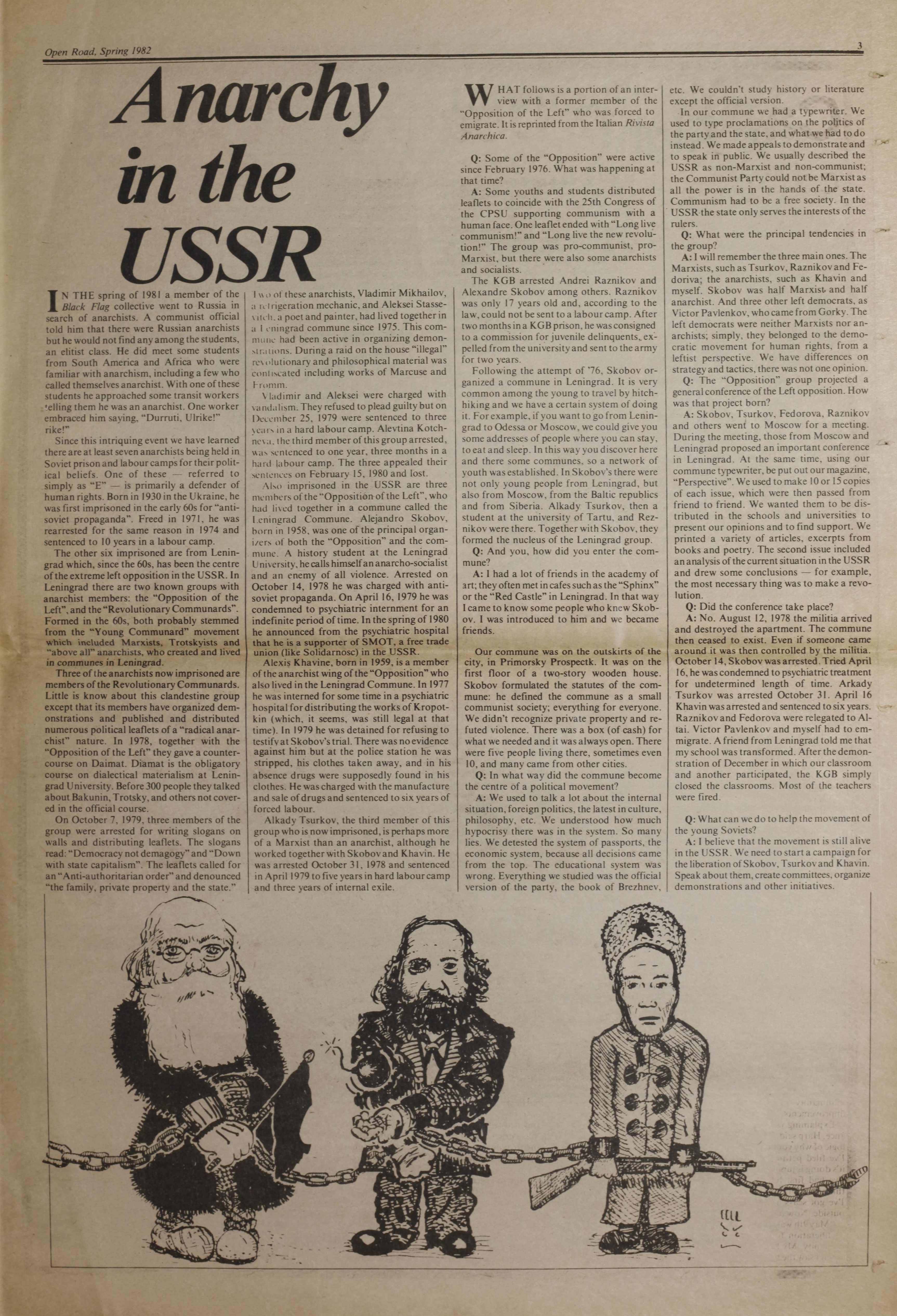 In this issue: The Blast. "Autonomy centre"; "Paint 'em black"; "No amnesty for socialists"; "Oh hell!"; "Anarchy in Africa". On the Road. "Carl Harp: death of an activist"; "Anarchy in the USSR"; "RCMP maintain the right" by Charles Tuke; "AIMbrothers: busted not broken"; "Guatemala: deaths and disappearances" by Bill Horne; "Open Road innocent! NEAC clarifies itself" by the New england Anarchist conference; "Germany: Tu-wat (do something!)" by Peter Francis; "Spain: squat or be squished"; "Netherlands: a squatter's day in Amsterdam"; "Interview with Murray Bookchin"; "In the beginning...". Roadside Notes. News from Nowhere.
