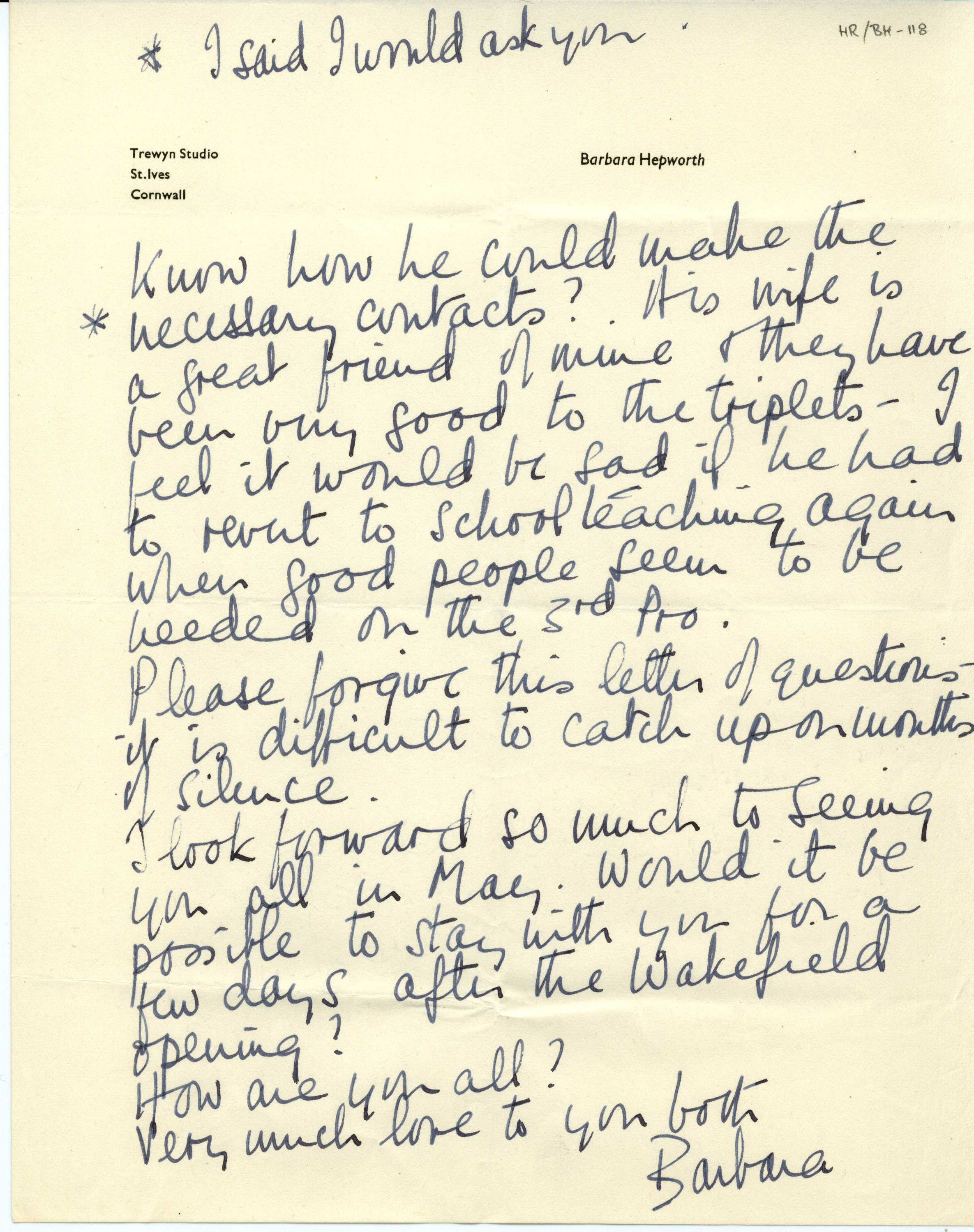 Letter from Barbara Hepworth to Herbert Read, March 02, 1951