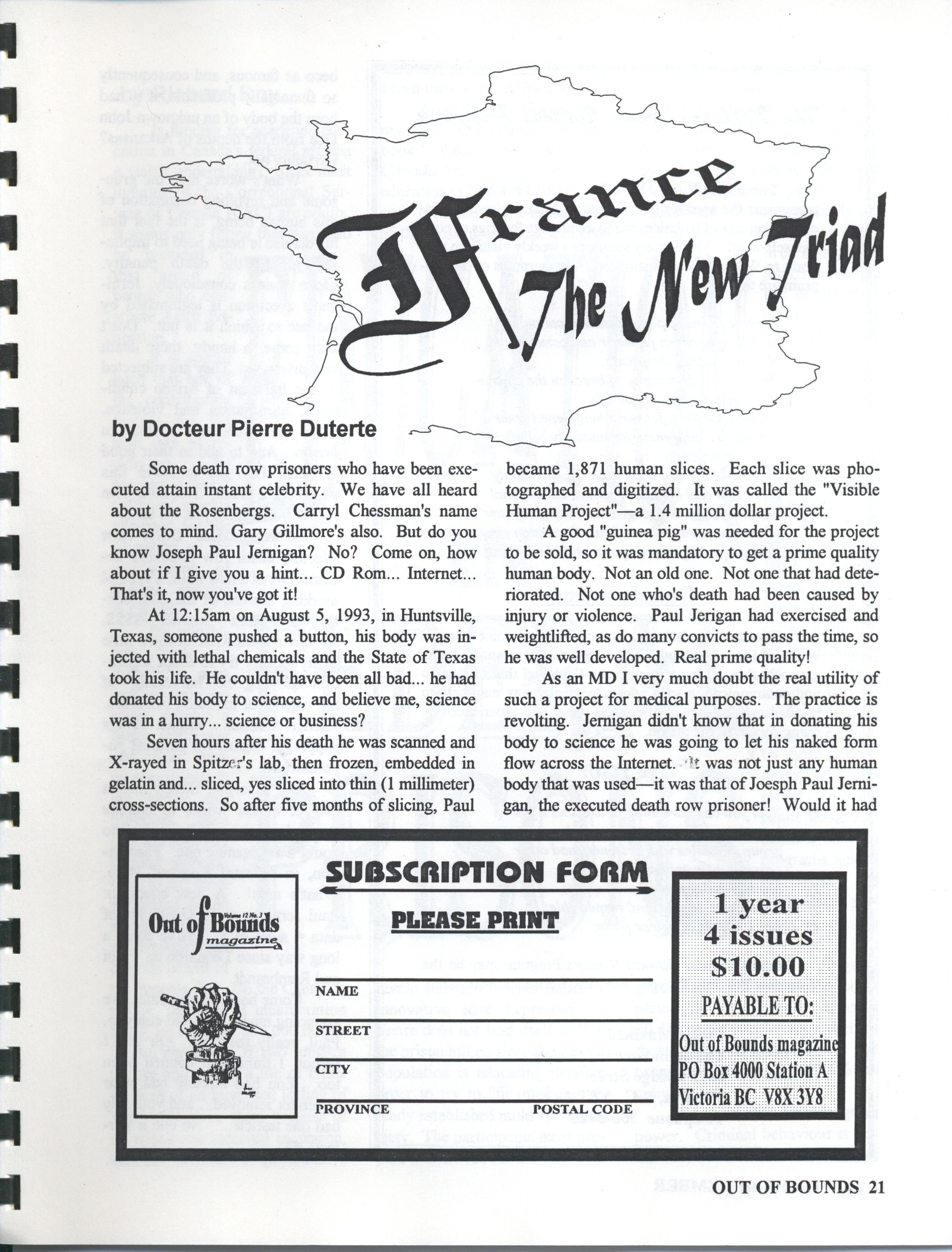 - Out of bounds prison magazine