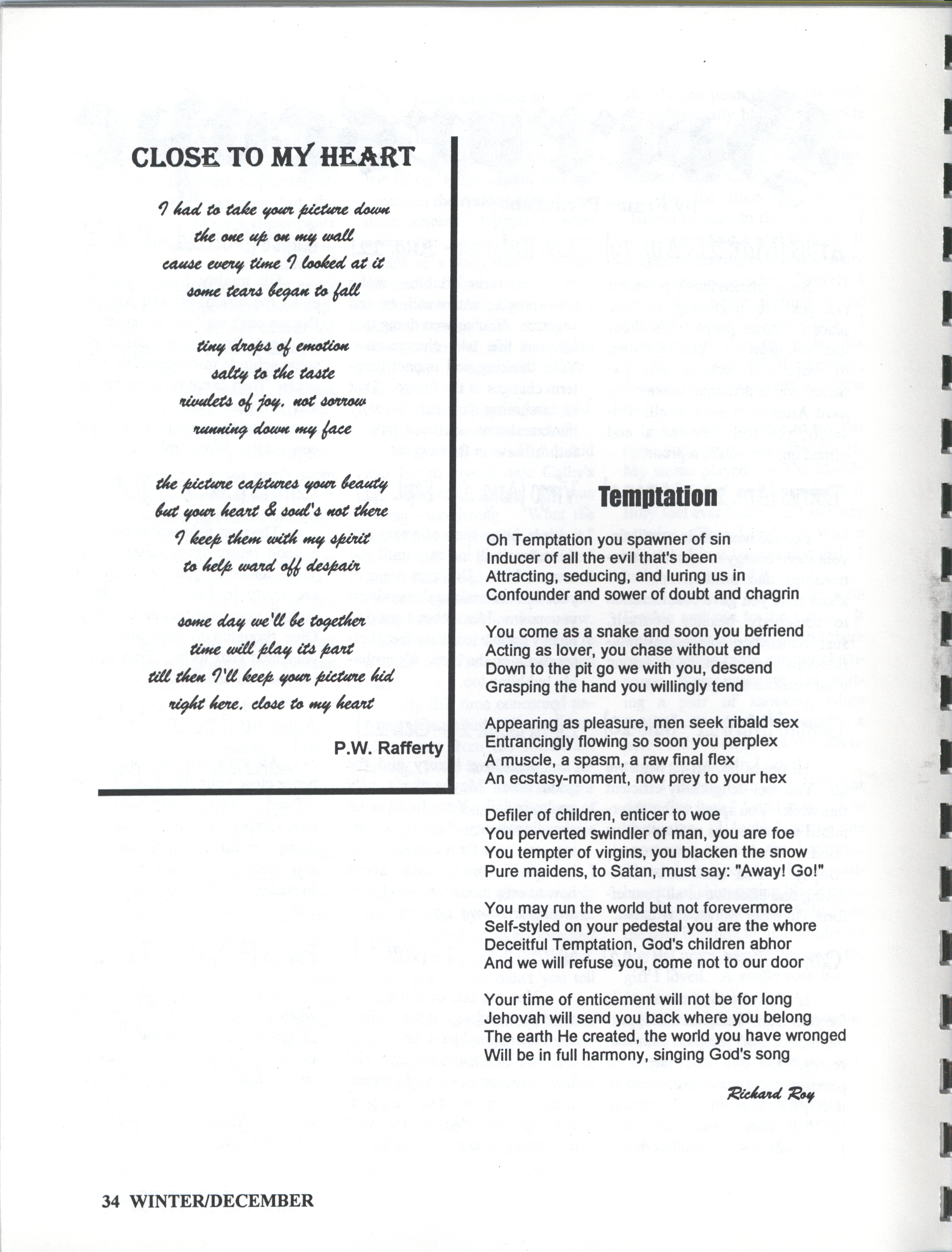 A non-profit quarterly publication of the thoughts, feelings, and distinct perspectives of prisoners and visitors by the prisoners at William Head Institution in Victoria, B.C. with the aim of providing a different view to the general public. Edited by Patrick W. Rafferty.