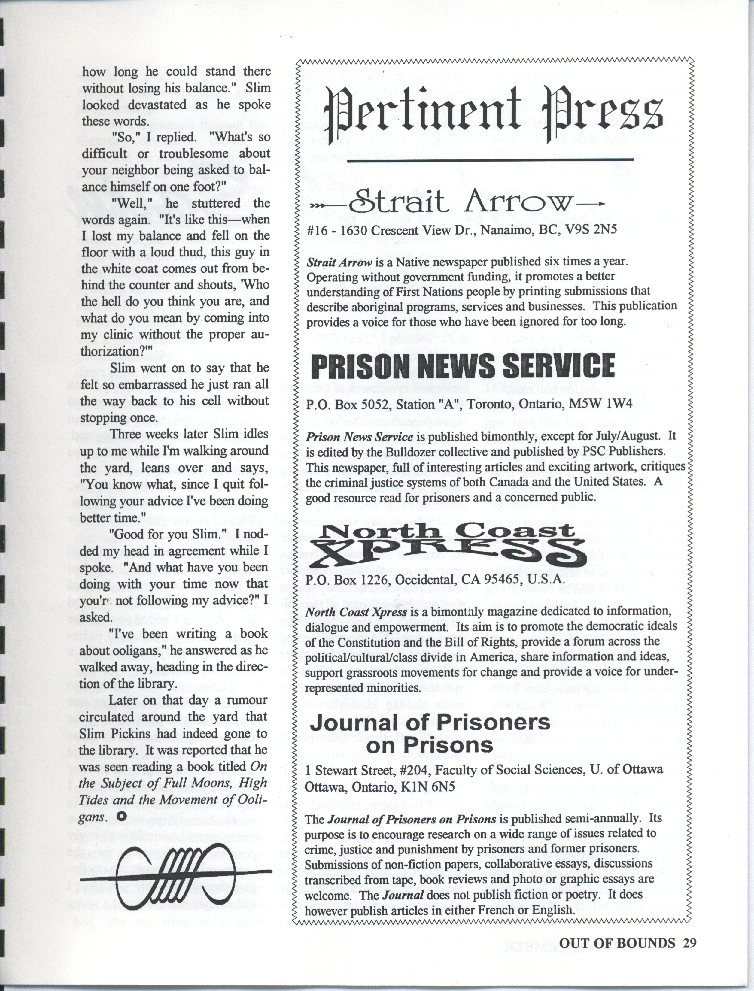 - Out of bounds prison magazine
