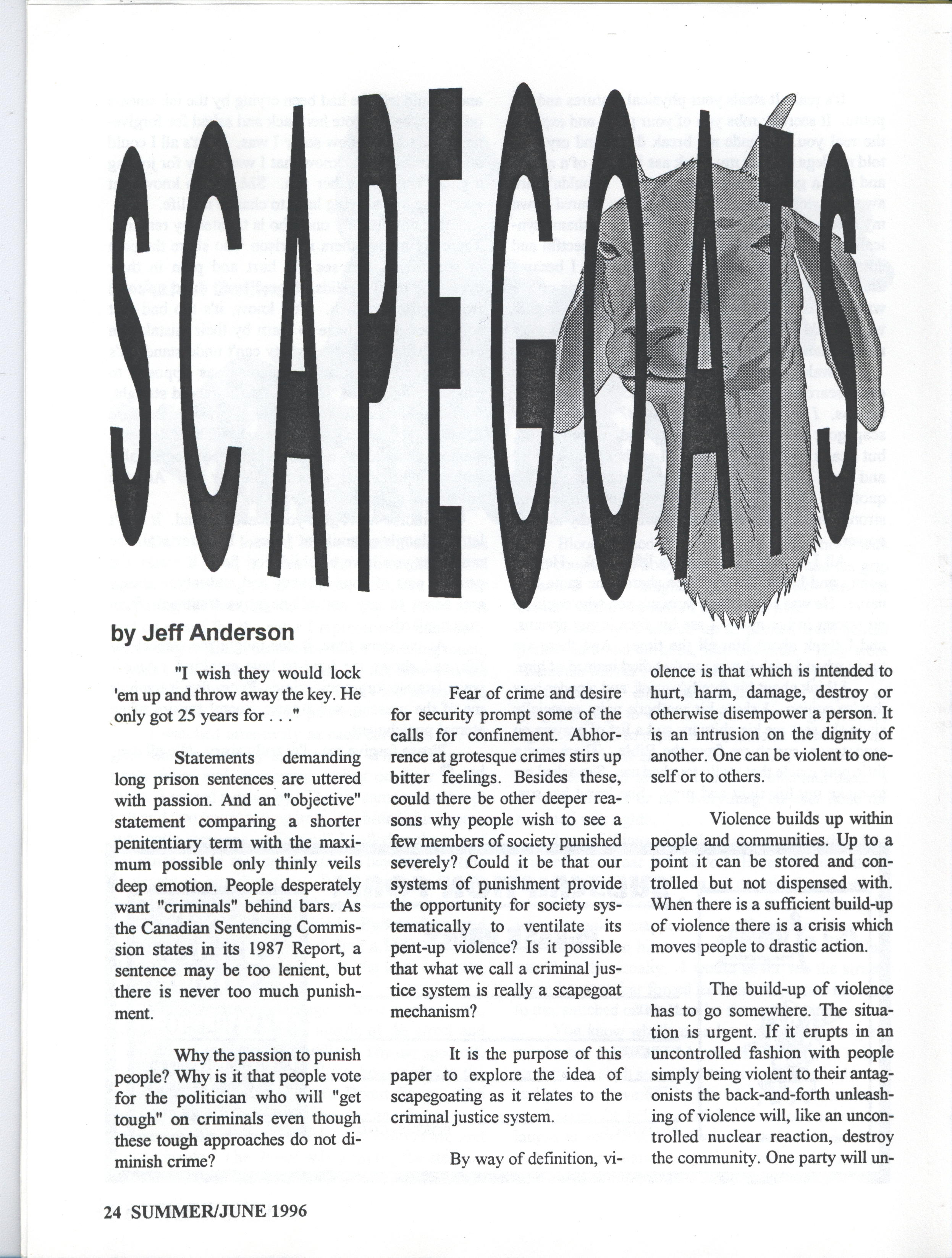 Article topics include: Tribute to Claire Culhane, Love and Rage, Around the PENinsula, Other Places, Primum Non Nocere, House of the Dead, Remorse, Scapegoats, Prison Mouse, and poetry.