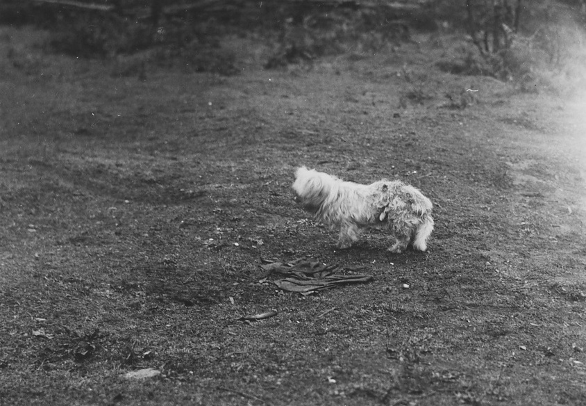 Annotation on the back of the photograph: Dog, 14 years old, which had been shorn each year for its wool. E. Saanich reserve. Photo by D. Jenness 1936 [date crossed out] Nov. 1935 Stamped with : Department of Mines Geological Survey Photographic Division, January 23, 1936.