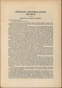 Report to the provincial government from the Provincial Industrial School for Boys. Includes information about the students and the school's activities.