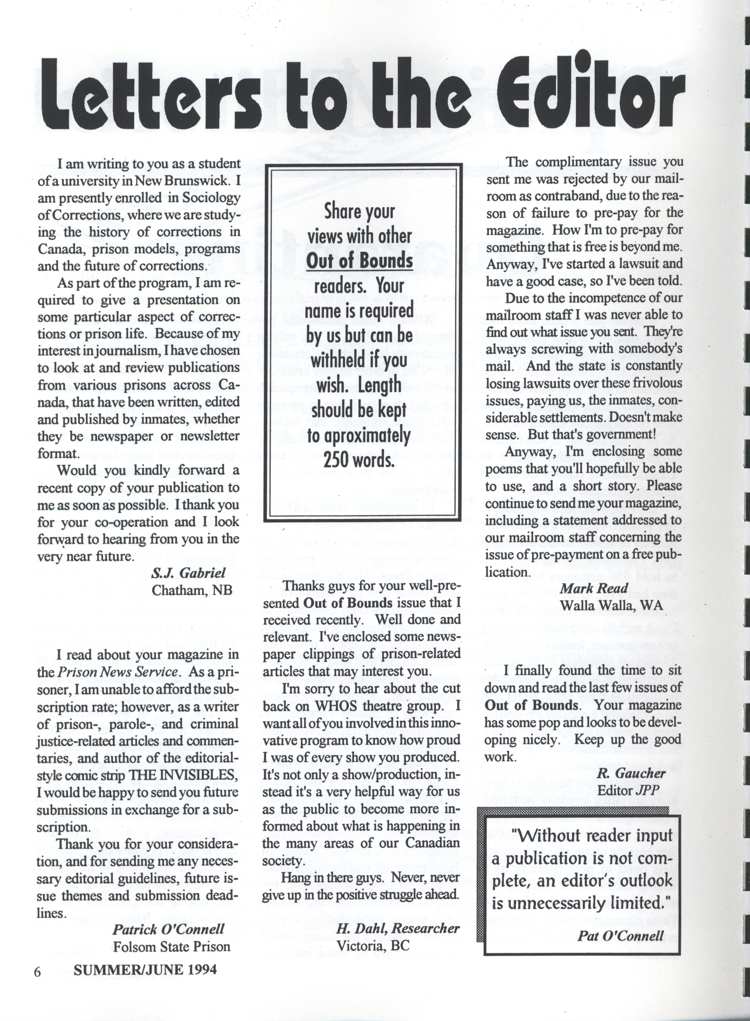 - Out of bounds prison magazine