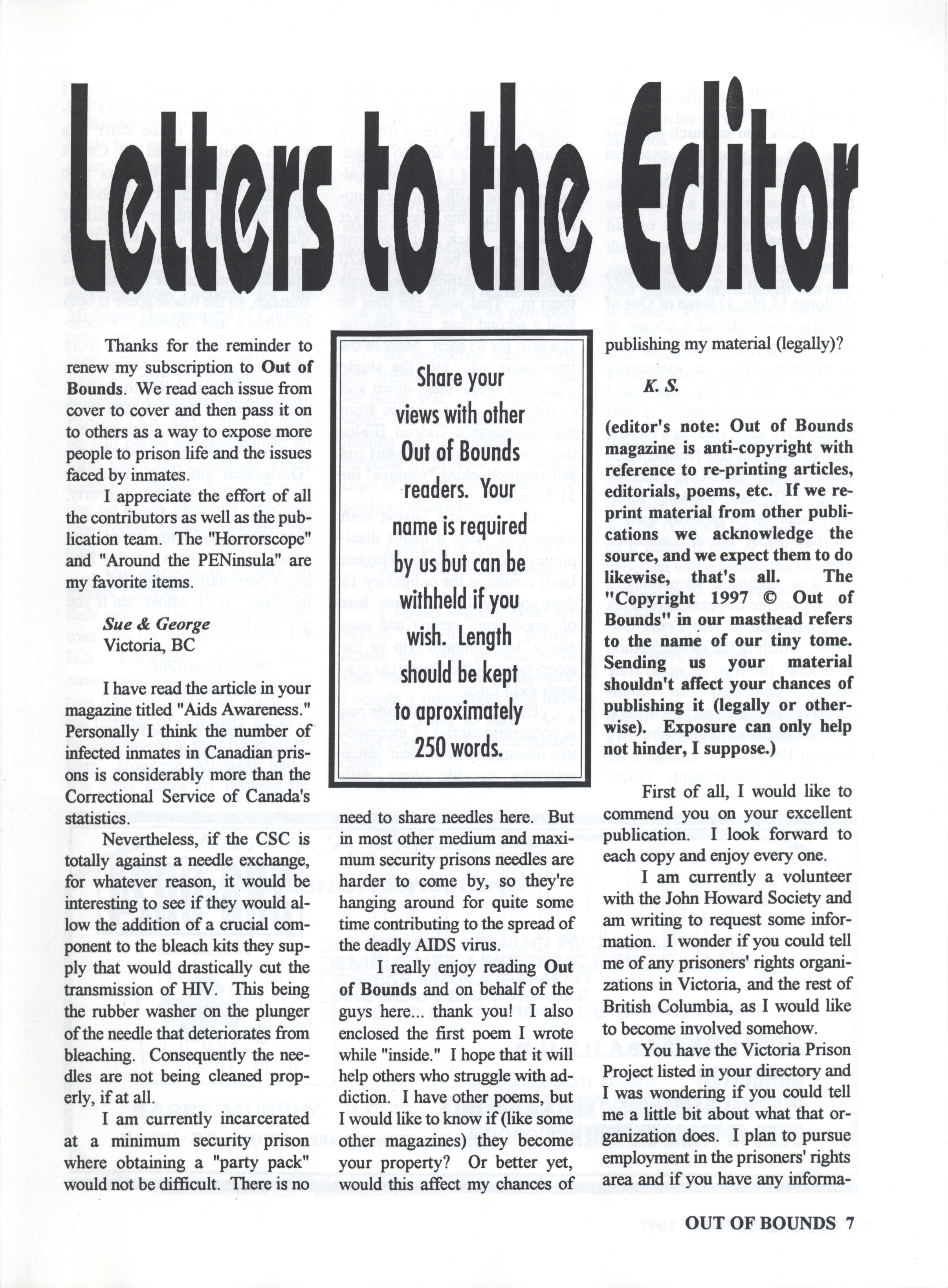 - Out of bounds prison magazine