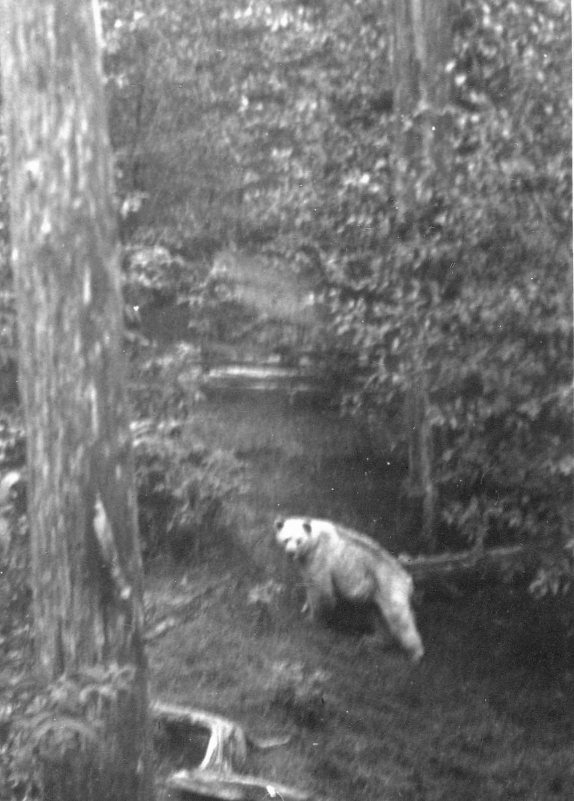 A kermode bear in forest on northern Princess Royal Island. The Kermode bear, also known as the "spirit bear", is a rare subspecies of the American black bear living in the Central and North Coast regions of British Columbia. It is noted for about one-tenth of its population having white or cream-coloured coats like polar bears. (Family: ursidae; trinomial name: Ursus americanus kermodei)