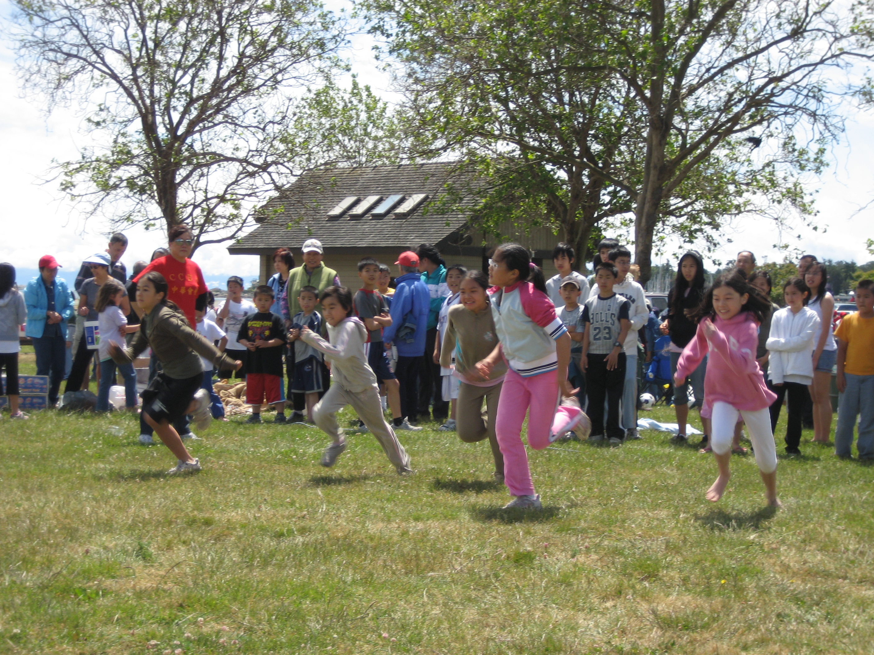 Shows a race for girls at the annual picnic of the Chinese Consolidated Benevolent Association in 2007 at Gyro Park in Cadboro Bay. Founded in 1884, the Chinese Consolidated Benevolent Association was a crucial force in Victoria's immigrant community.