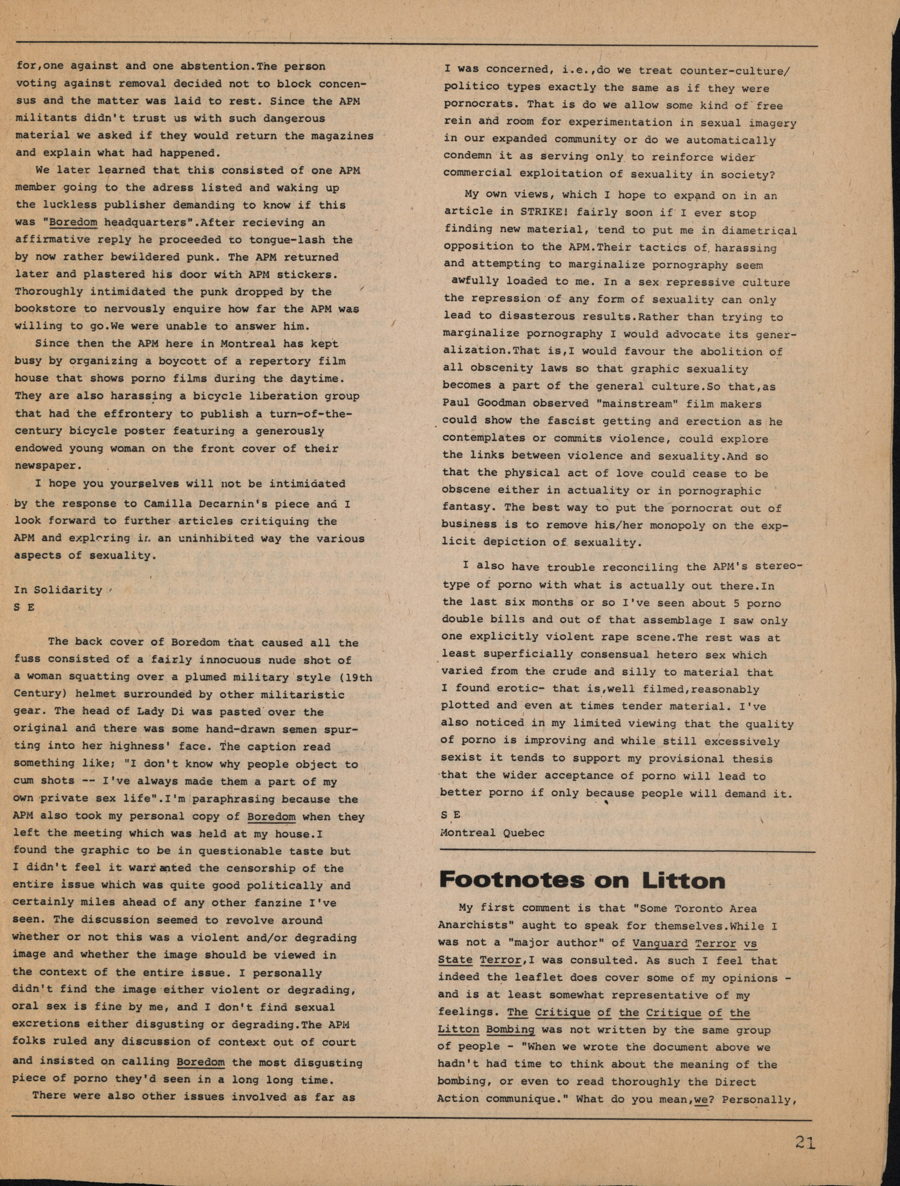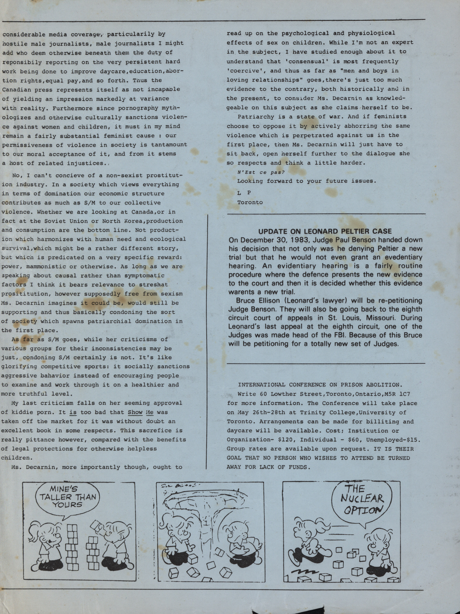 A social anarchist and anti-authoritarian quarterly publication. In this issue: "No more patriarchy issue" - Porn debate continued, Exterior decorating A social anarchist and anti-authoritarian quarterly publication. tips, War, patriarchy, and other diseases, Sitting on a man-- African feminist roots, Vancouver 5 write, WAVAW statement.