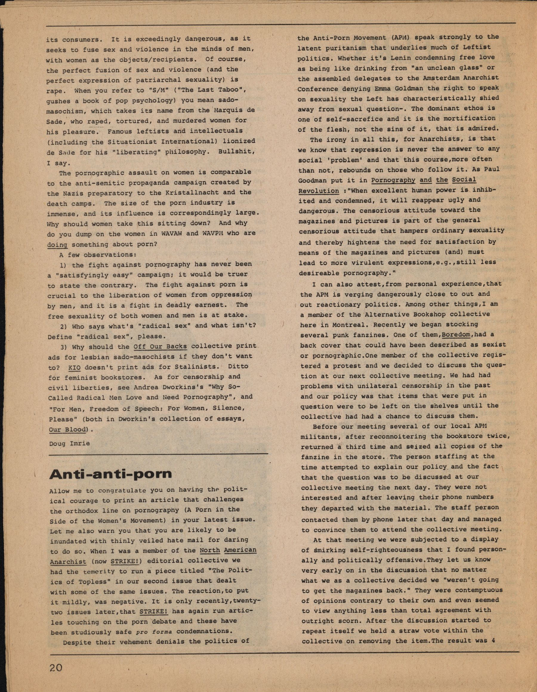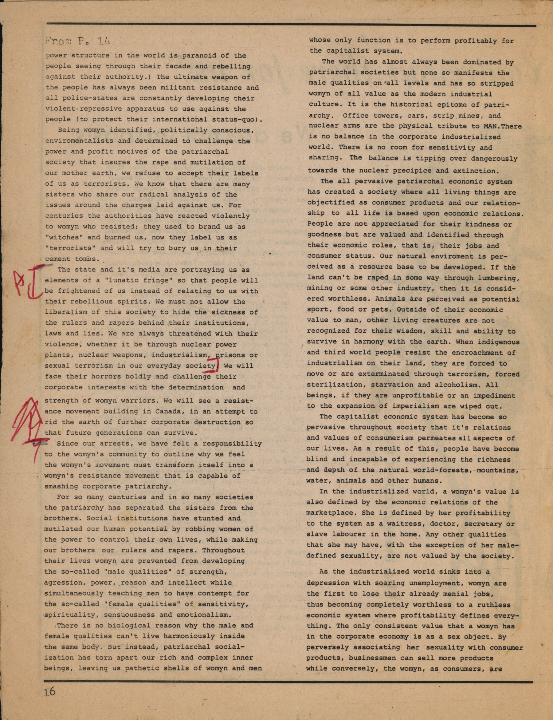 A social anarchist and anti-authoritarian quarterly publication. In this issue: "No more patriarchy issue" - Porn debate continued, Exterior decorating A social anarchist and anti-authoritarian quarterly publication. tips, War, patriarchy, and other diseases, Sitting on a man-- African feminist roots, Vancouver 5 write, WAVAW statement.