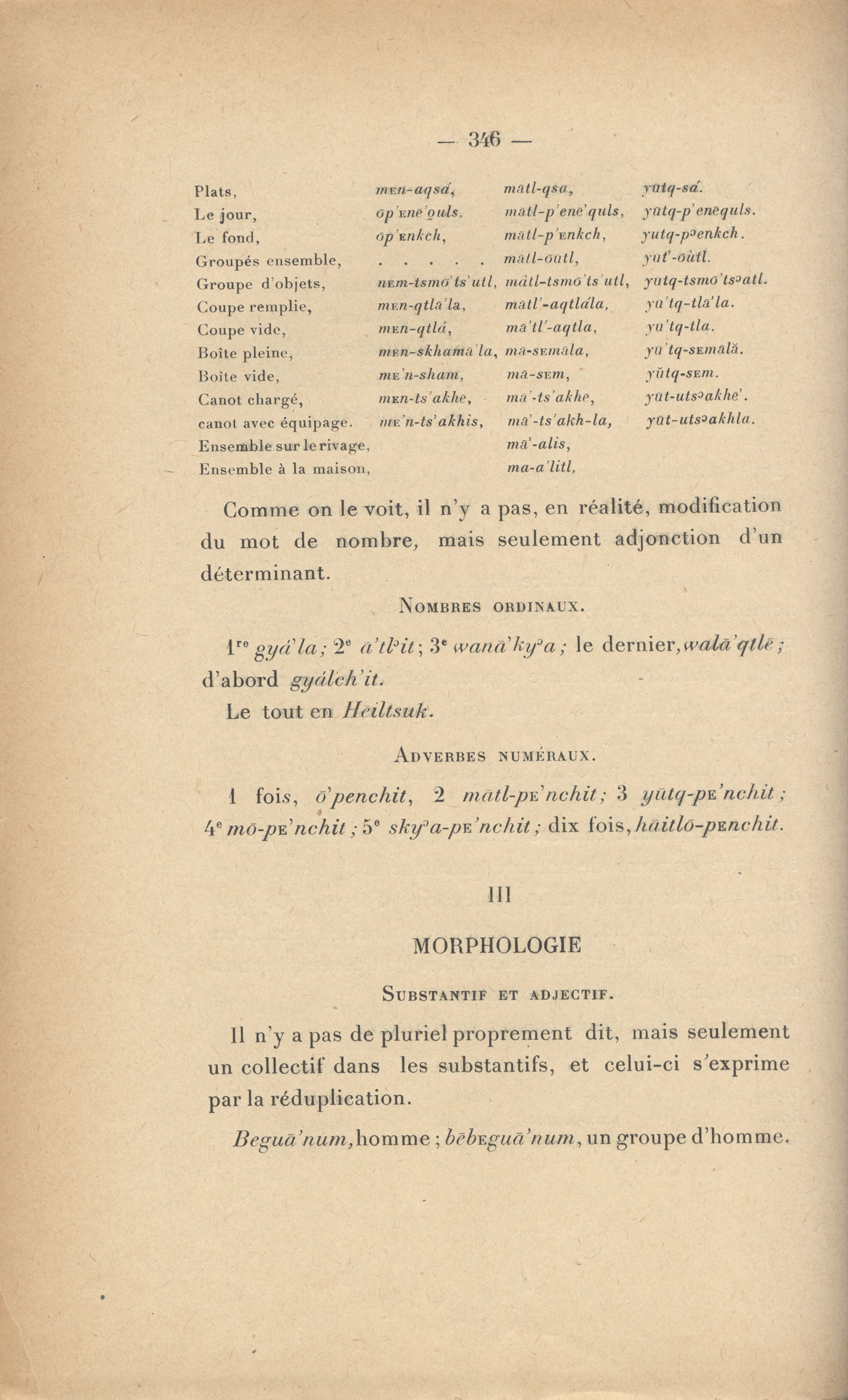 Written in French and focuses on the grammar and usages of five languages in British Columbia namely: Haida, Tshimshian, Kwagiutl, Nootka, and Tlinkit.