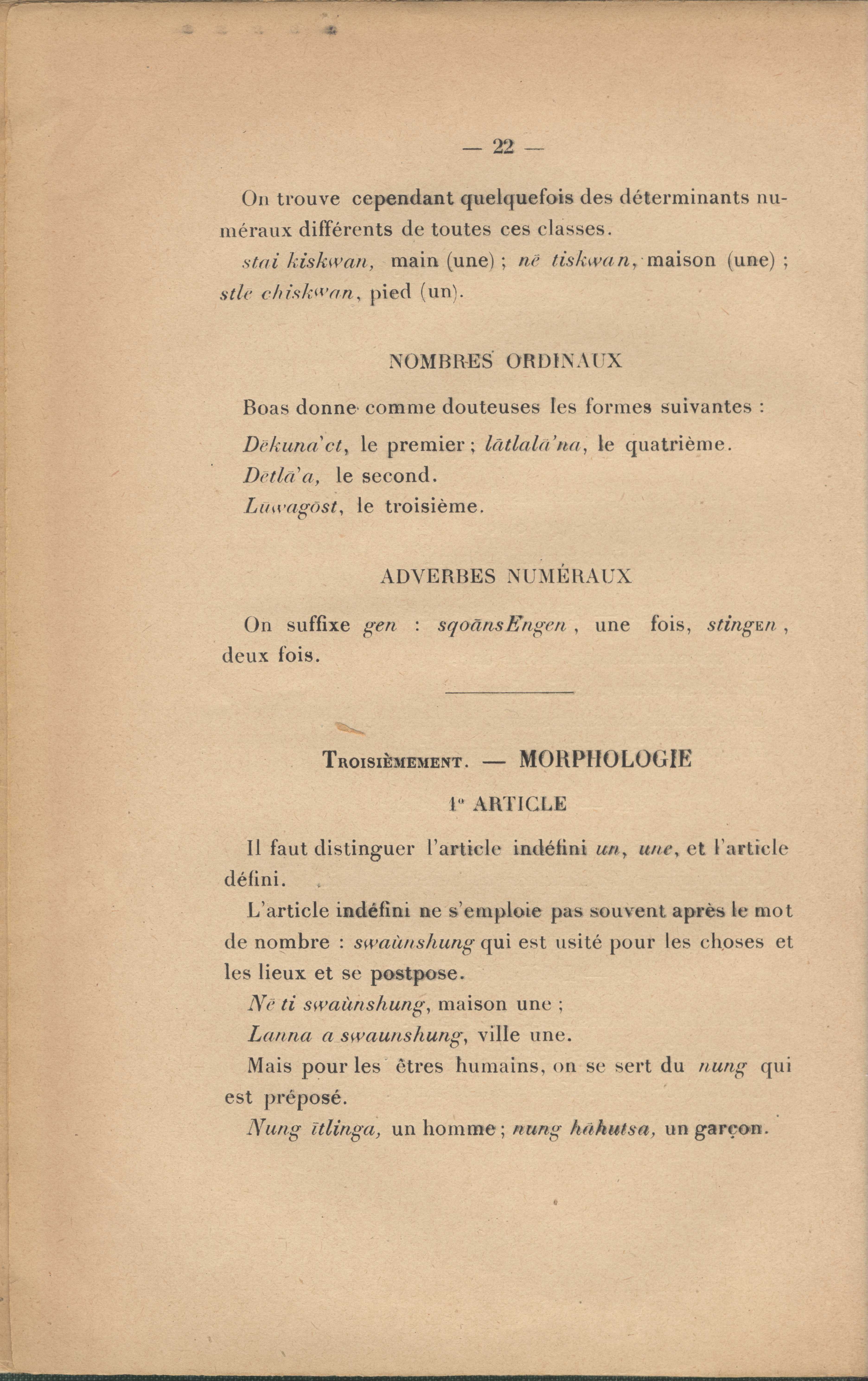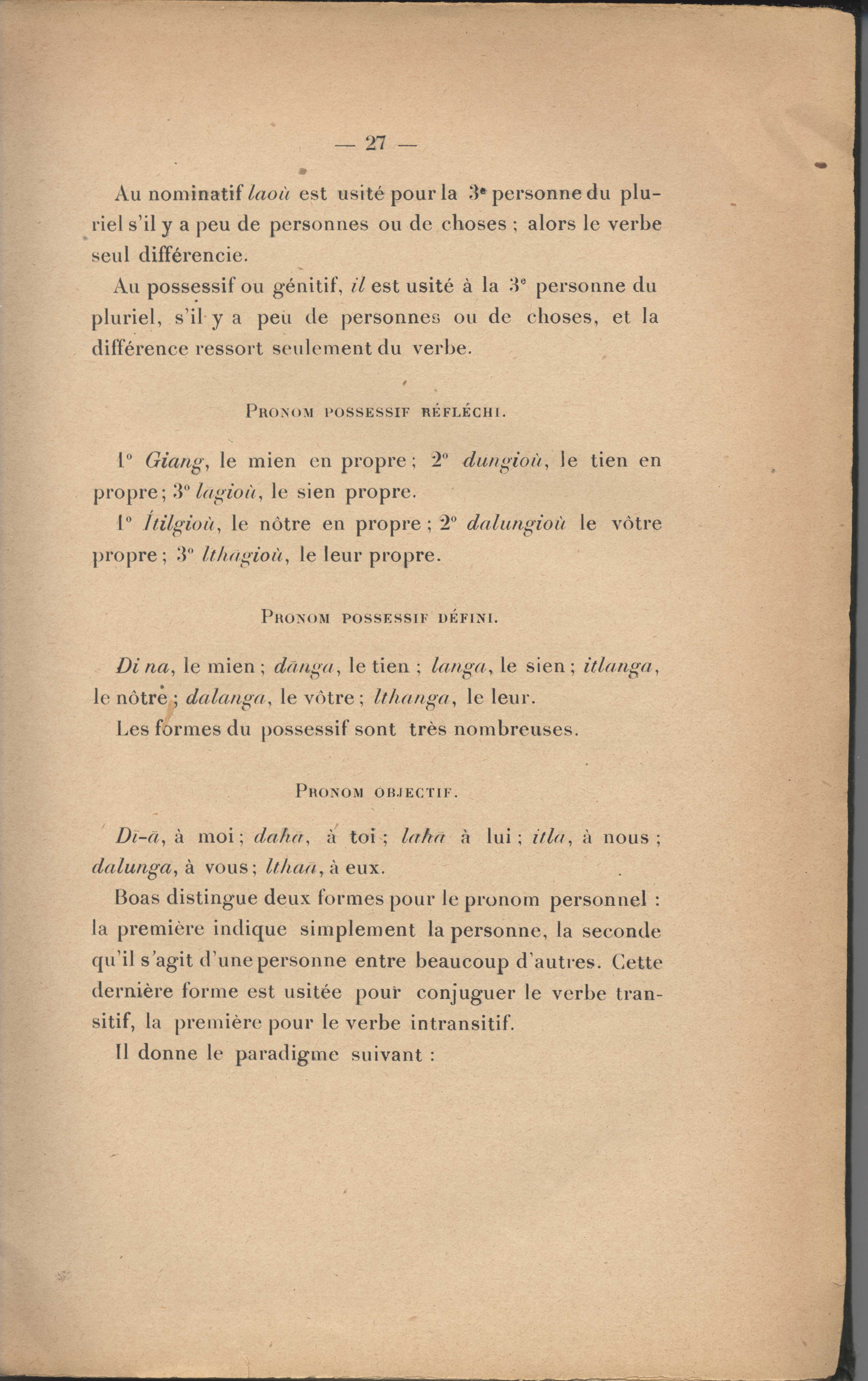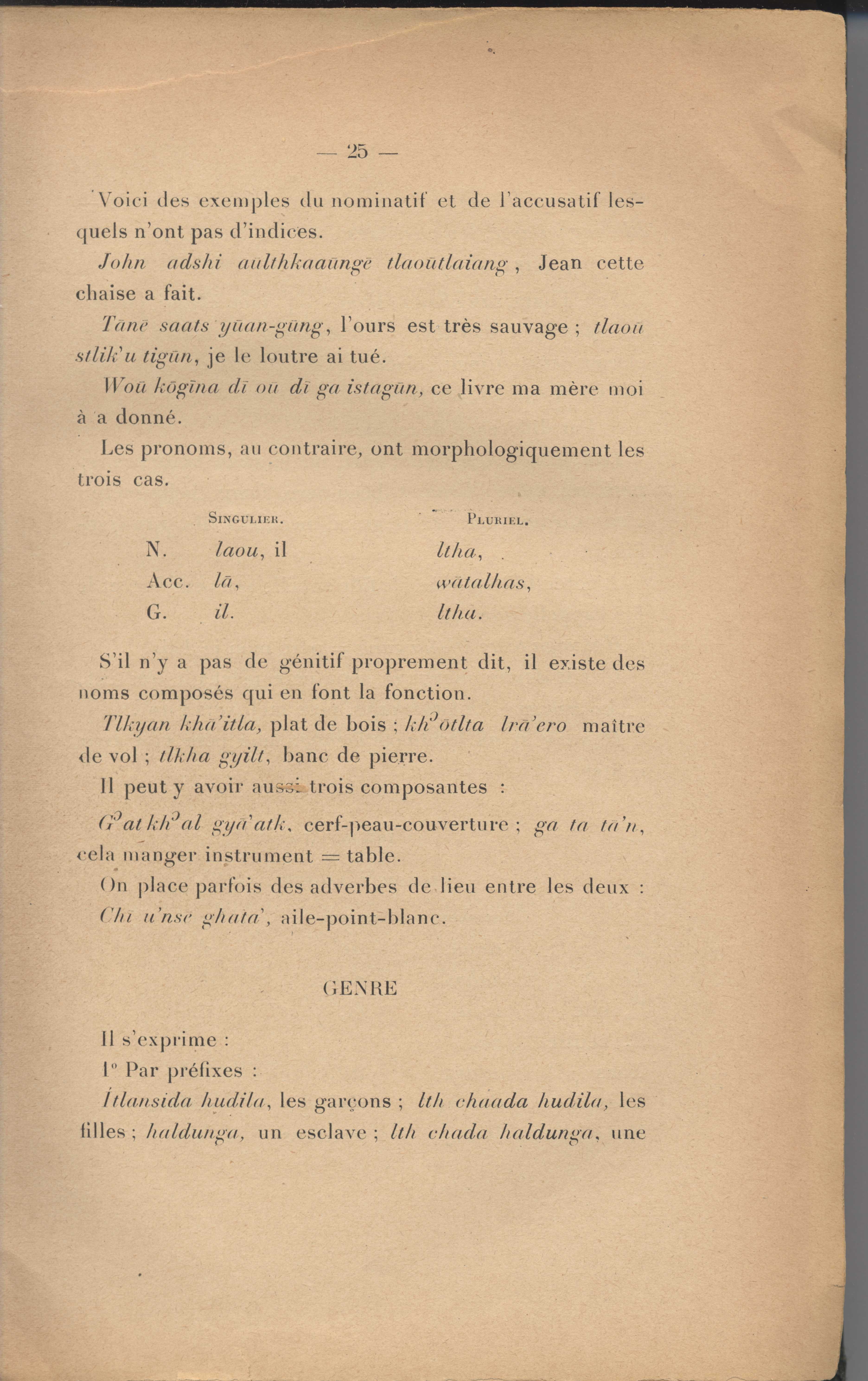 Written in French and focuses on the grammar and usages of five languages in British Columbia namely: Haida, Tshimshian, Kwagiutl, Nootka, and Tlinkit.