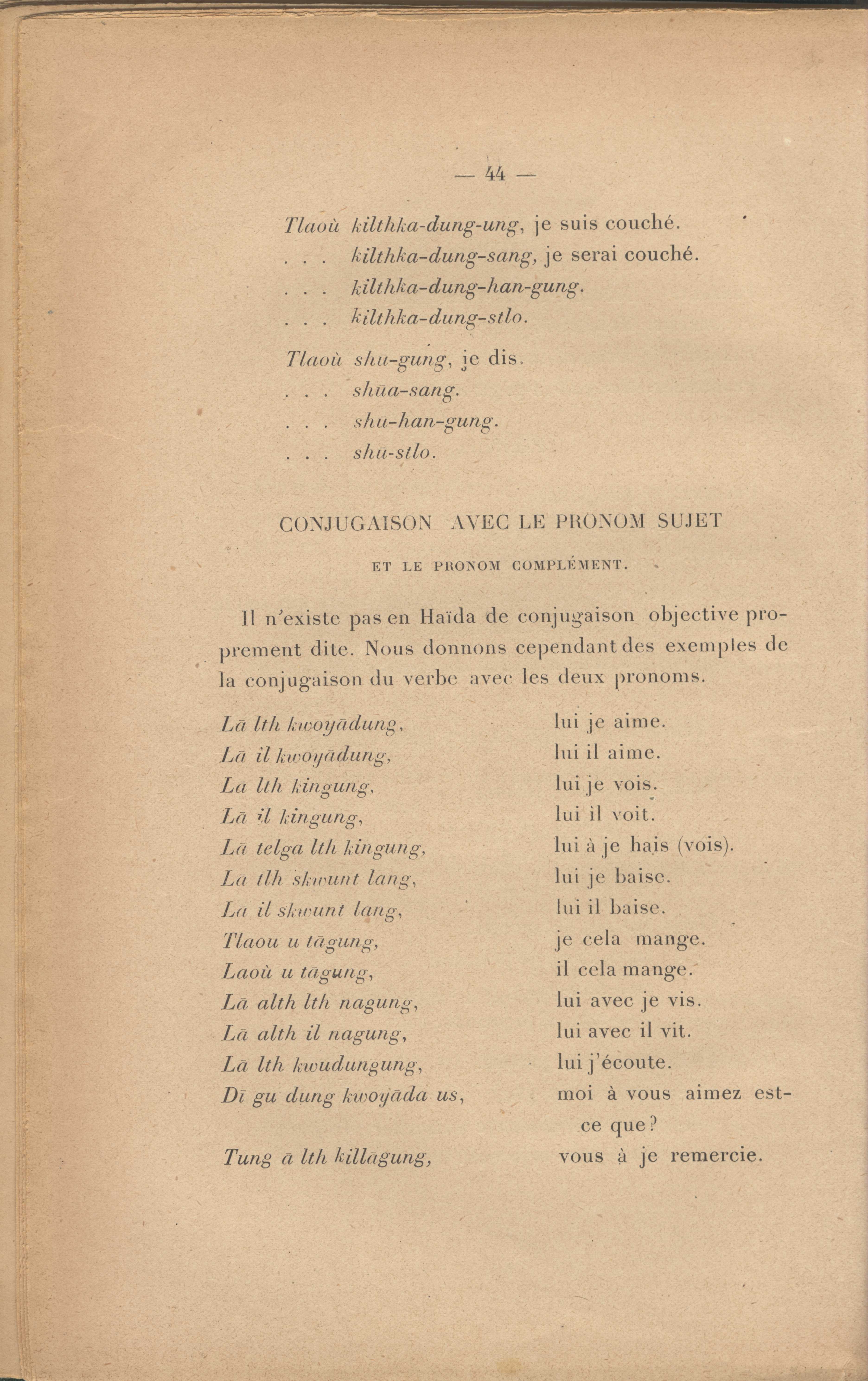 Written in French and focuses on the grammar and usages of five languages in British Columbia namely: Haida, Tshimshian, Kwagiutl, Nootka, and Tlinkit.