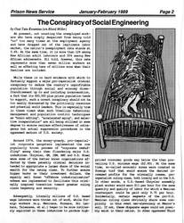 The Prison News Network (PNS) focuses on political trials, repressive abuses of imprisonment and the resistance to such oppression. It was joined with another existing prison periodical called Marionette made by prisoners for prisoners and the general public to spread awareness of the conditions prisons, Marion Penitentiary, Illinois in particular. Edited by Bill Dunne. Article topics include: Political trials grind on, The conspiracy of social engineering, More official murder, AIDS action in Toronto, Prison AIDS information, Emerging from the shadows, Bombing suspect setup. (Note: p. 6-7 is a double-page spread). Marionette, no. 41, January-February 1989. Article topics include: Poseur press pillories prisoners, Marionnotes, Swines' suicide scam, Clean water rumor.