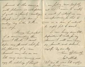 This letter is part of a series of courtship correspondence between Jonathan Abbatt and Mary Dilworth (later Abbatt). The Abbatt family was a Quaker family who lived in the towns and villages of Preston, Ribchester, and Garstang in Lancashire, England. The letters chronicle the courtship, discussions of faith, local events, shared sentiments, etc. Mary sometimes addressed as Polly in the letters. Please note that the months on the letters’ dates were added as numerical values rather than the month's name (e.g. 2 Mo = February). Mary will be back from her trip soon and Jonathan writes that he's looking forward to having her within walking distance again.
