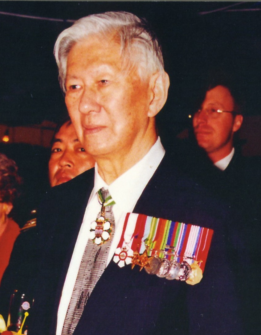 Show Douglas Jung wore badges. Douglas Jung (鄭天華, 1924-2002), a World War II Veteran, was born in Victoria, B.C. on February 24, 1924. He was a lawyer and the first Canadian of Chinese origin elected to the House of Commons. He was also appointed by Prime Minister John Diefenbaker as a Canadian representative to the United Nations as Chair of the Canadian Legal Delegation. His profusion of honours included the Order of Canada and the Order of British Columbia, the highest honours a citizen can receive from the federal and provincial governments respectively.
