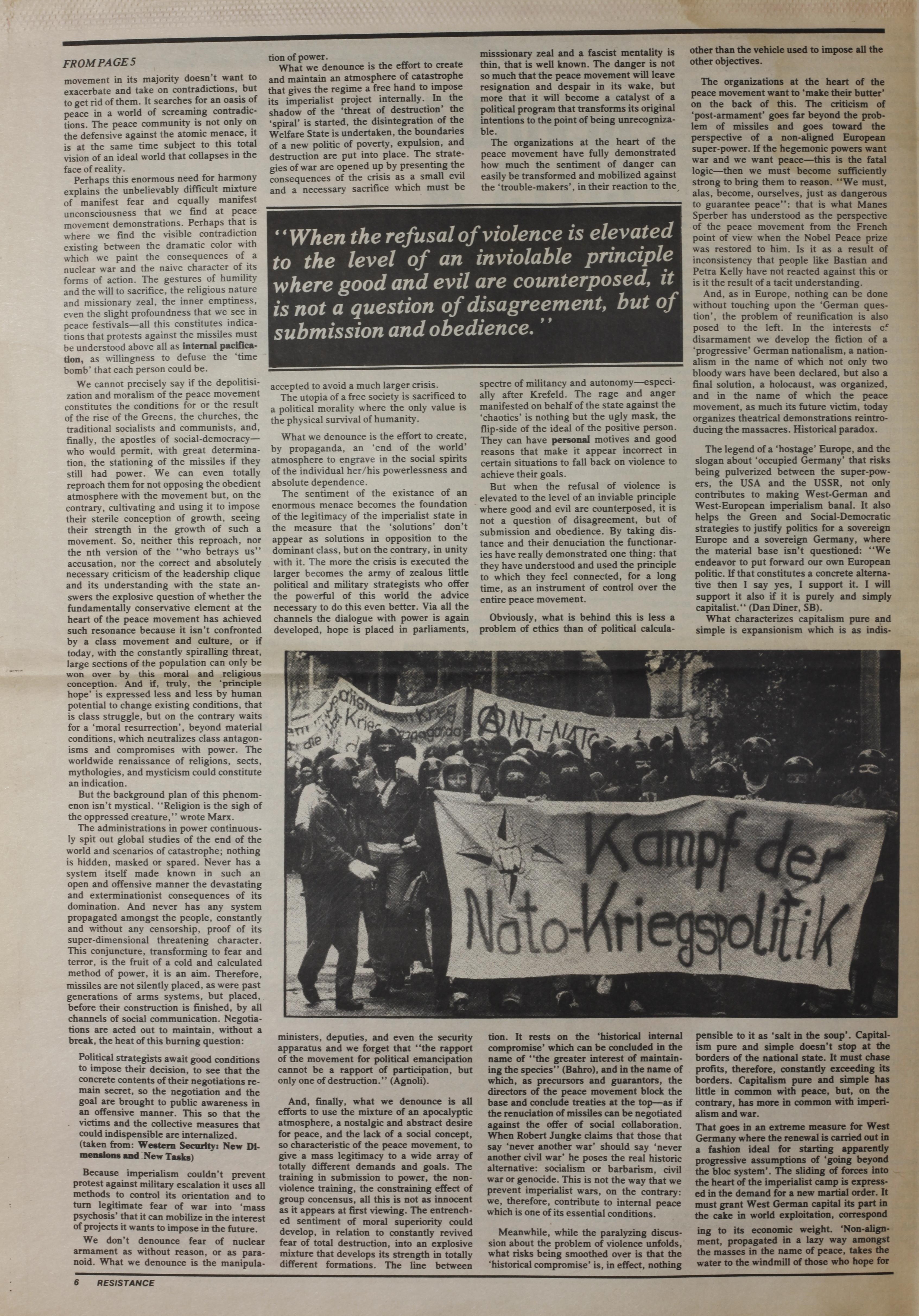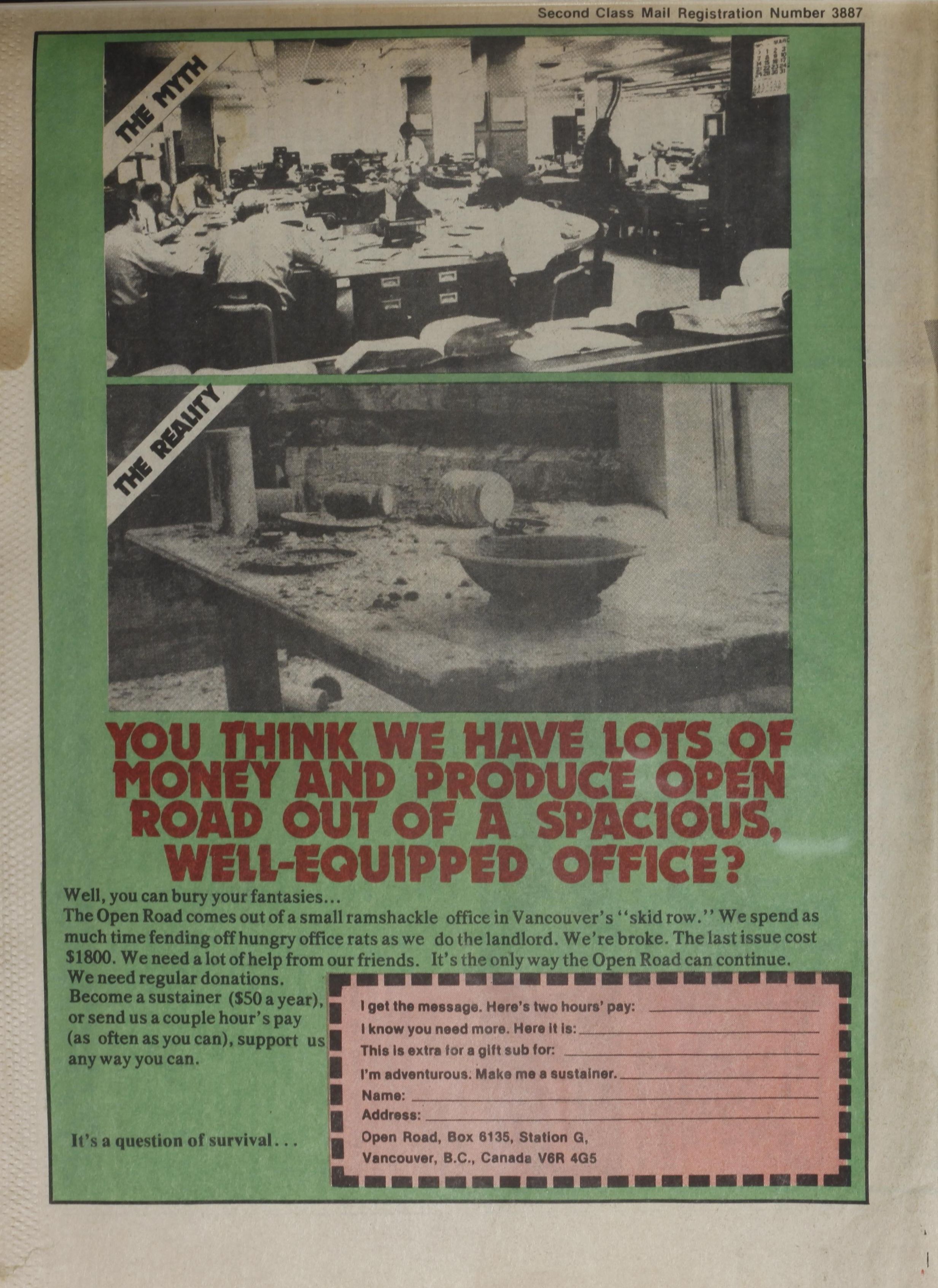 An anarchist publication produced in Vancouver, British Columbia focused on the international spectrum of anarchist and anti-authoritarian activities around popular struggles and social problems. Includes a special insert: Resistance no. 10 (published by Friends of Durruti, Vancouver, BC).