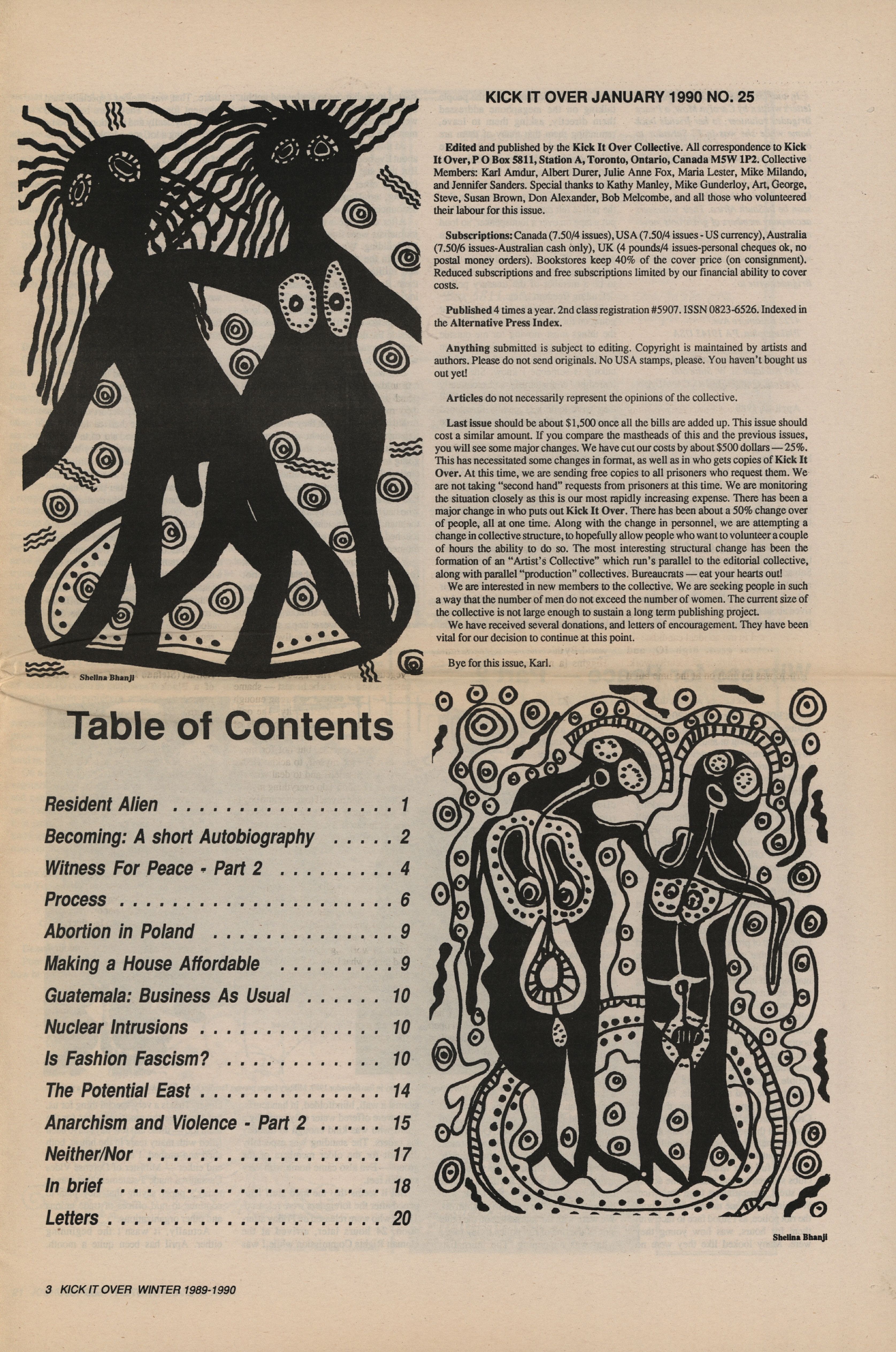 A social anarchist and anti-authoritarian quarterly publication. In this issue: The Other Side of Fashion; Process; Salvadorian Diary; Personal Retrospective.
