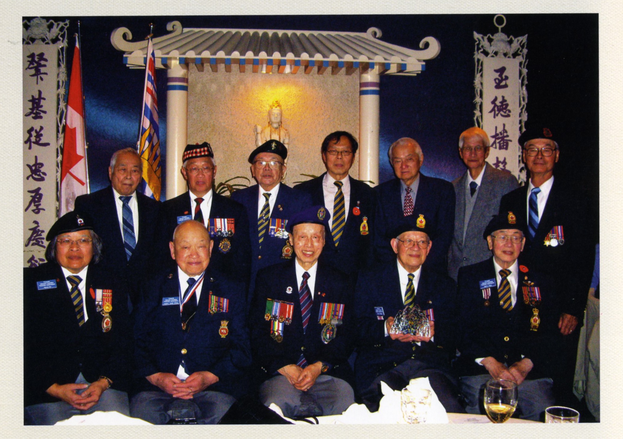 Formal group photograph of proud members of the Victoria Chinese Canadian Veterans Association.