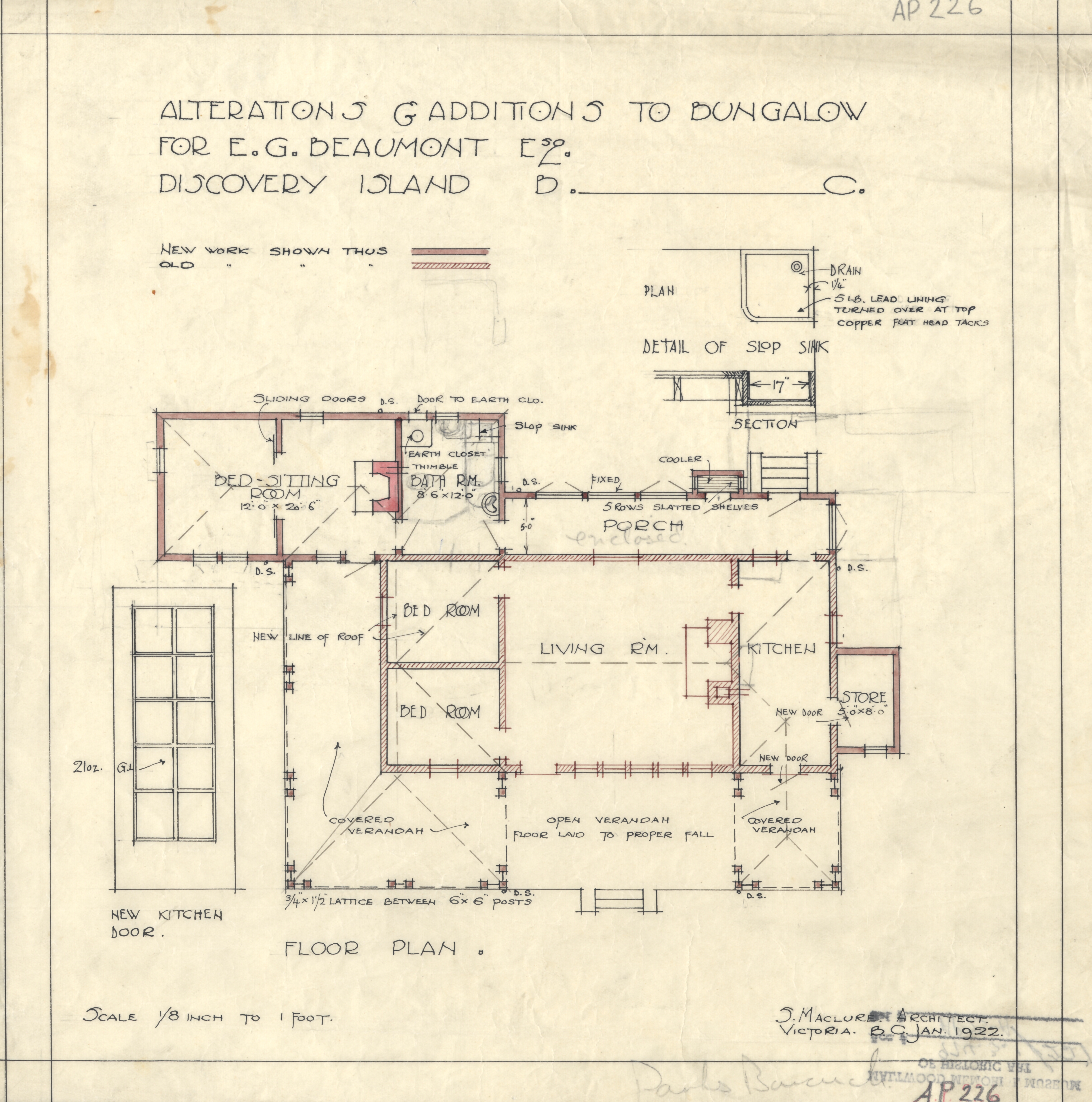 Alterations & additions to bungalow for E.G. Beaumont, Esq., Discovery Island, B.C.