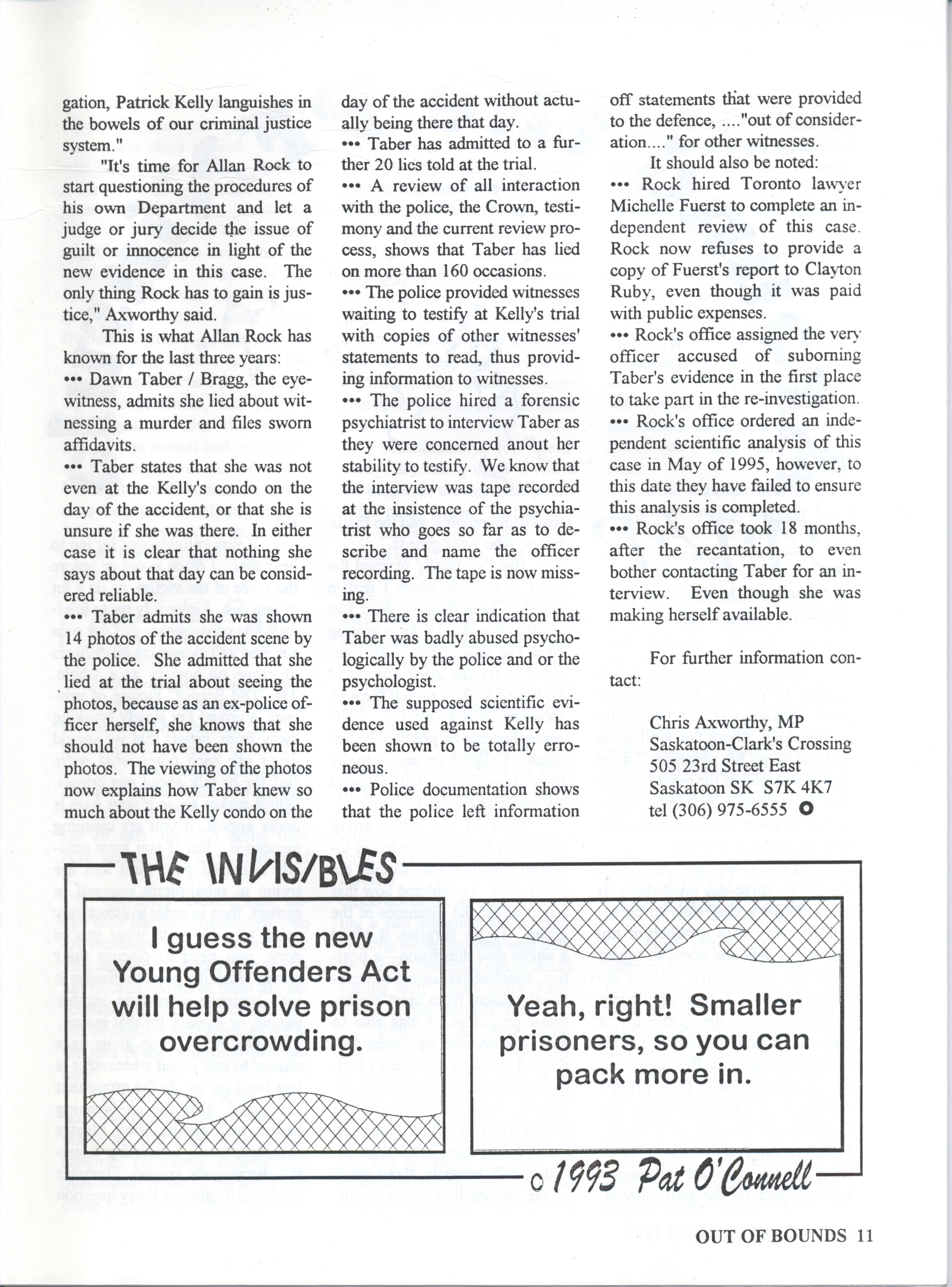 A non-profit quarterly publication of the thoughts, feelings, and distinct perspectives of prisoners and visitors by the prisoners at William Head Institution in Victoria, B.C. with the aim of providing a different view to the general public. Edited by Patrick W. Rafferty.