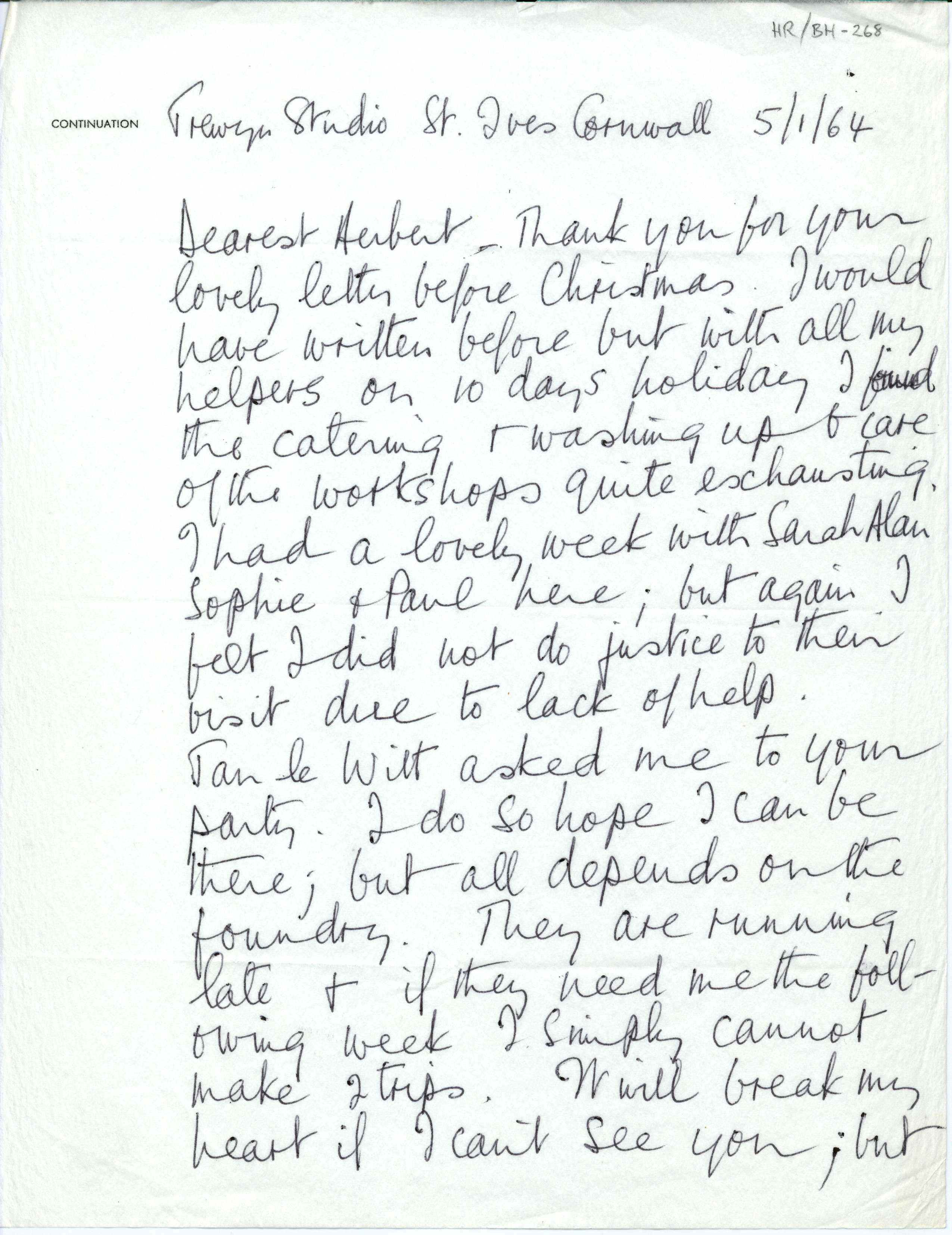 Enclosure from Feb 28, 1963 letter from Hepworth to Read.